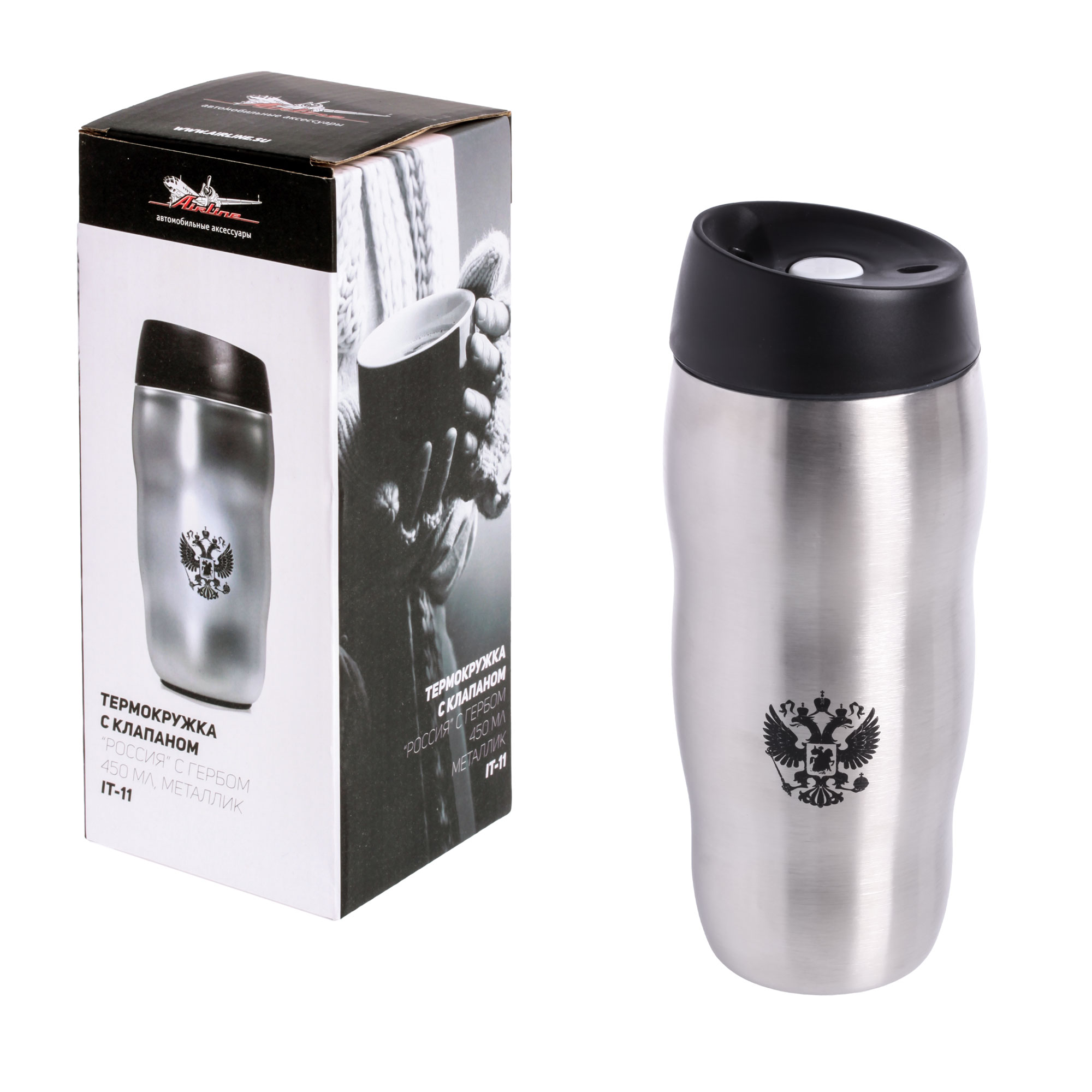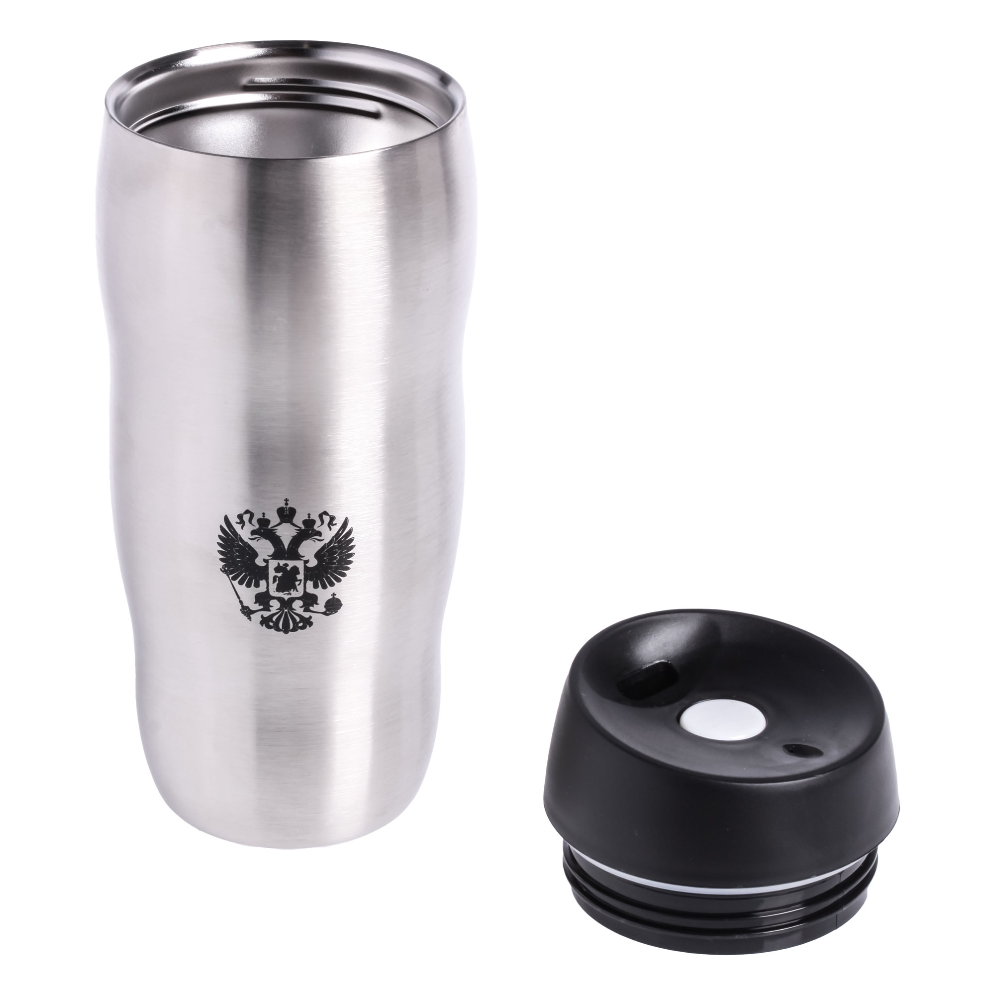 Термокружка c клапаном "РОССИЯ", с гербом, 450 мл., металлик