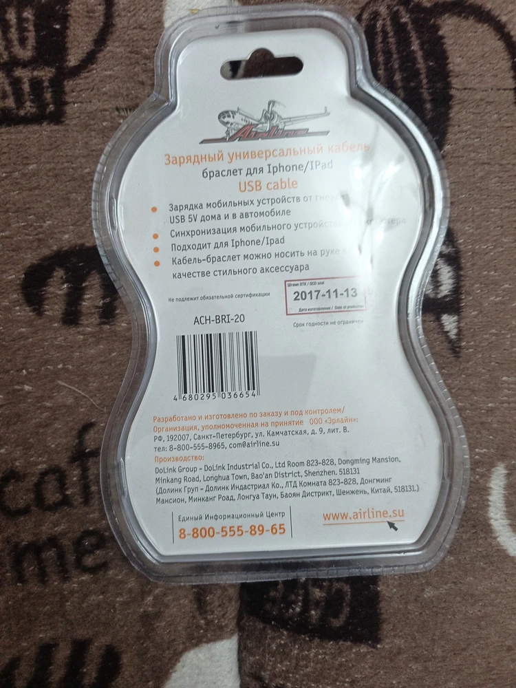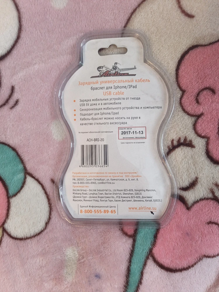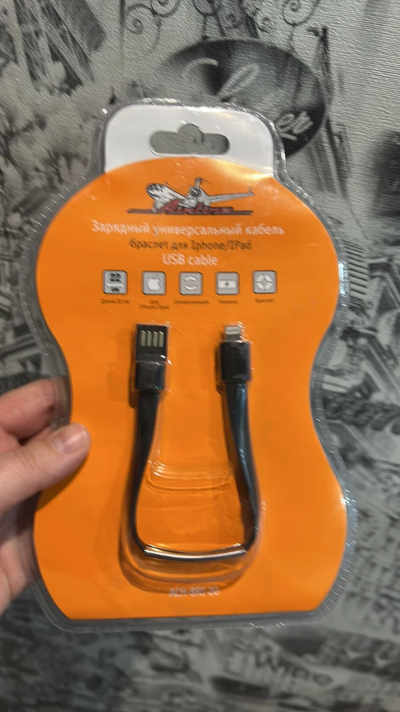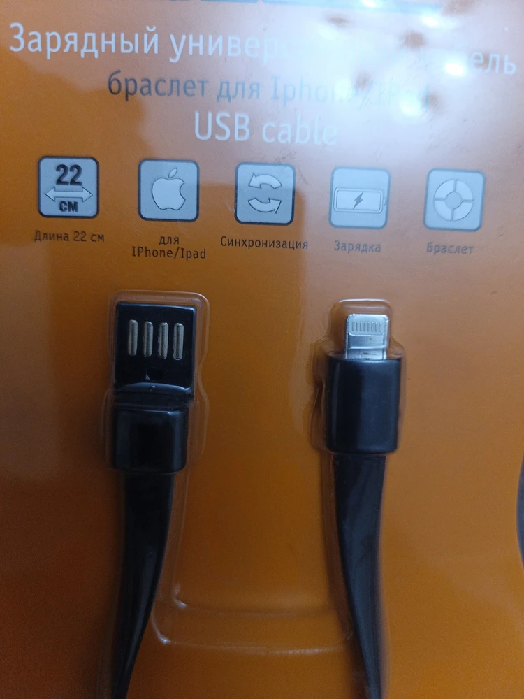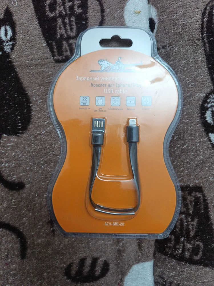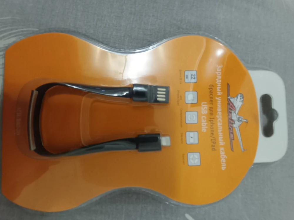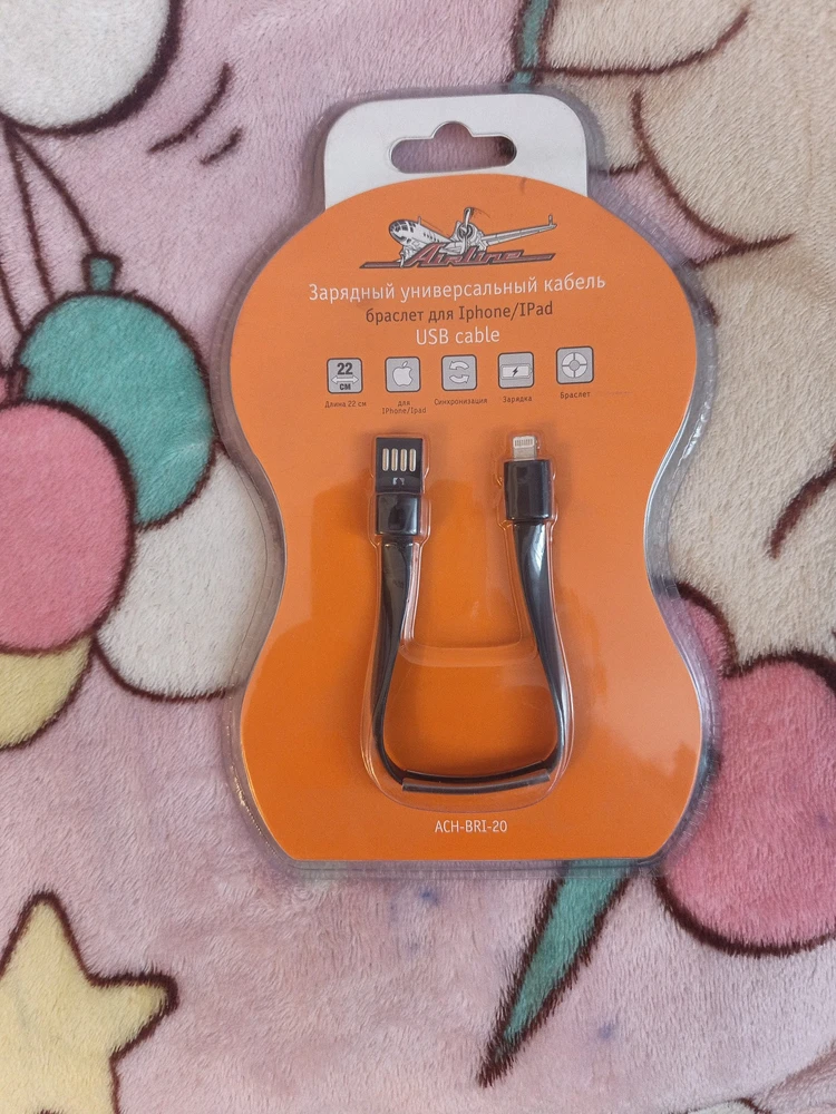 Датакабель для зарядки гаджетов от розетки USB. Можно носить на запястье, как браслет.