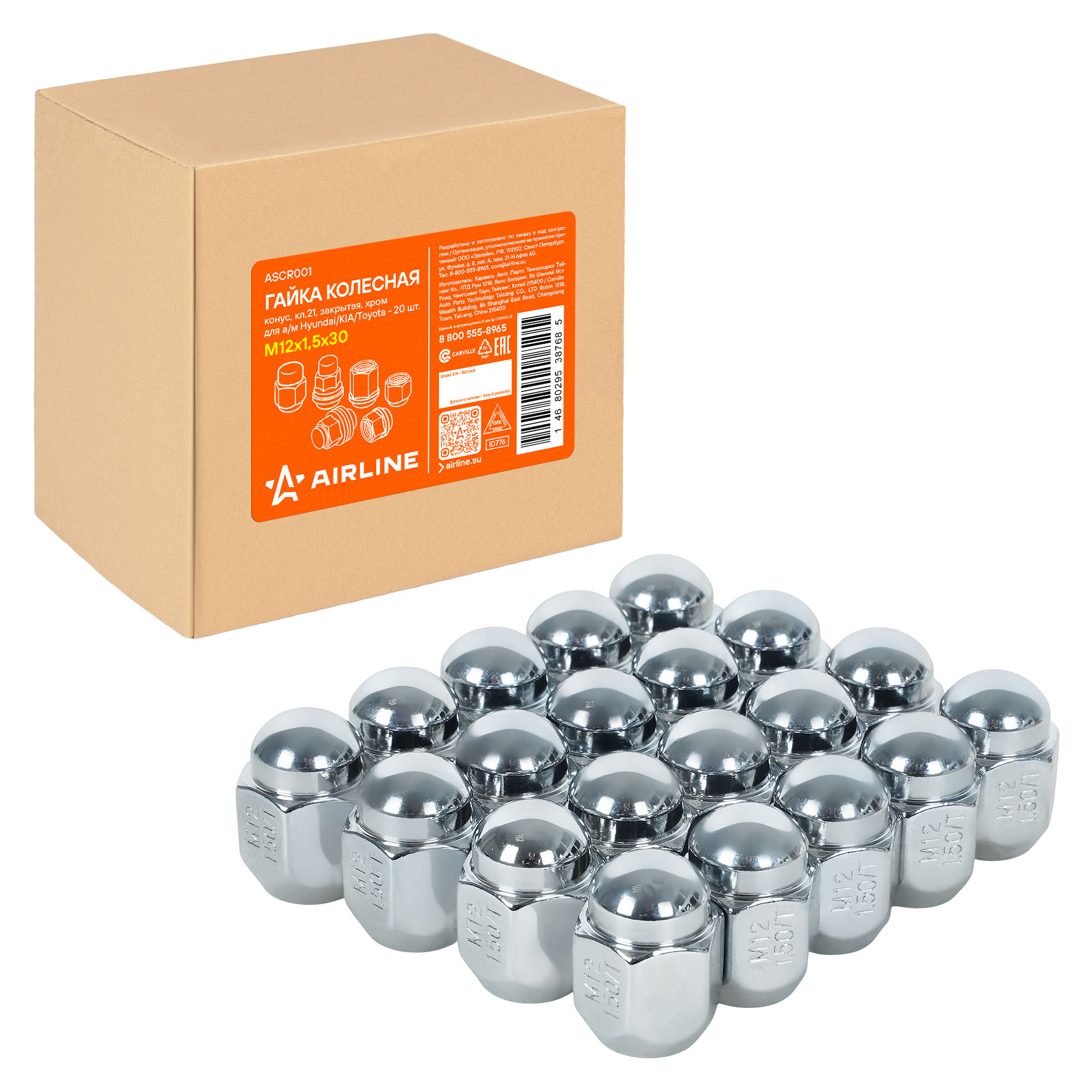 Гайка для колес закрытого типа предотвращает попадание грязи и влаги на резьбу, что способствует надежности крепления и продлевает срок эксплуатации. Точная нарезка обеспечивает легкую установку и надежное сцепление с резьбой без смещения. Выбирая колесную гайку AIRLINE, вы получаете максимальную безопасность, надежность и долговечность крепежных элементов вашего автомобиля.
