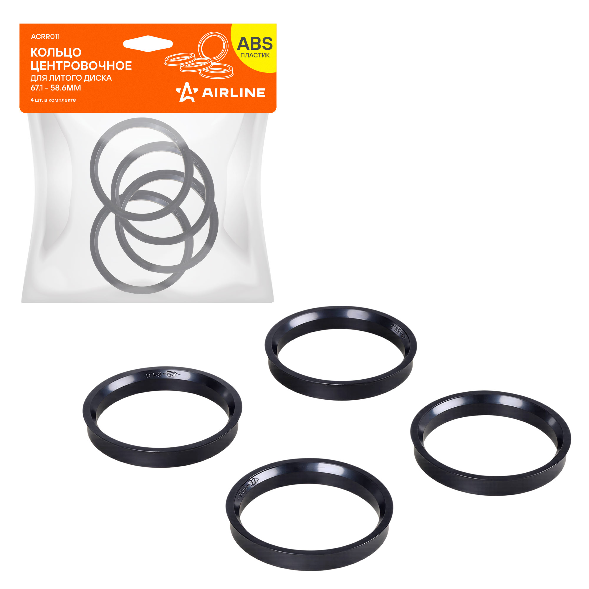 Центровочные кольца AIRLINE ACRR011 для литых дисков 67.1–58.6 мм, комплект 4 шт. — это надежное решение для точной посадки литых колесных дисков на ступицу автомобиля. Они компенсируют разницу в диаметре между центральным отверстием диска (67.1 мм) и посадочным диаметром ступицы (58.6 мм), обеспечивая идеальную центровку колеса.
