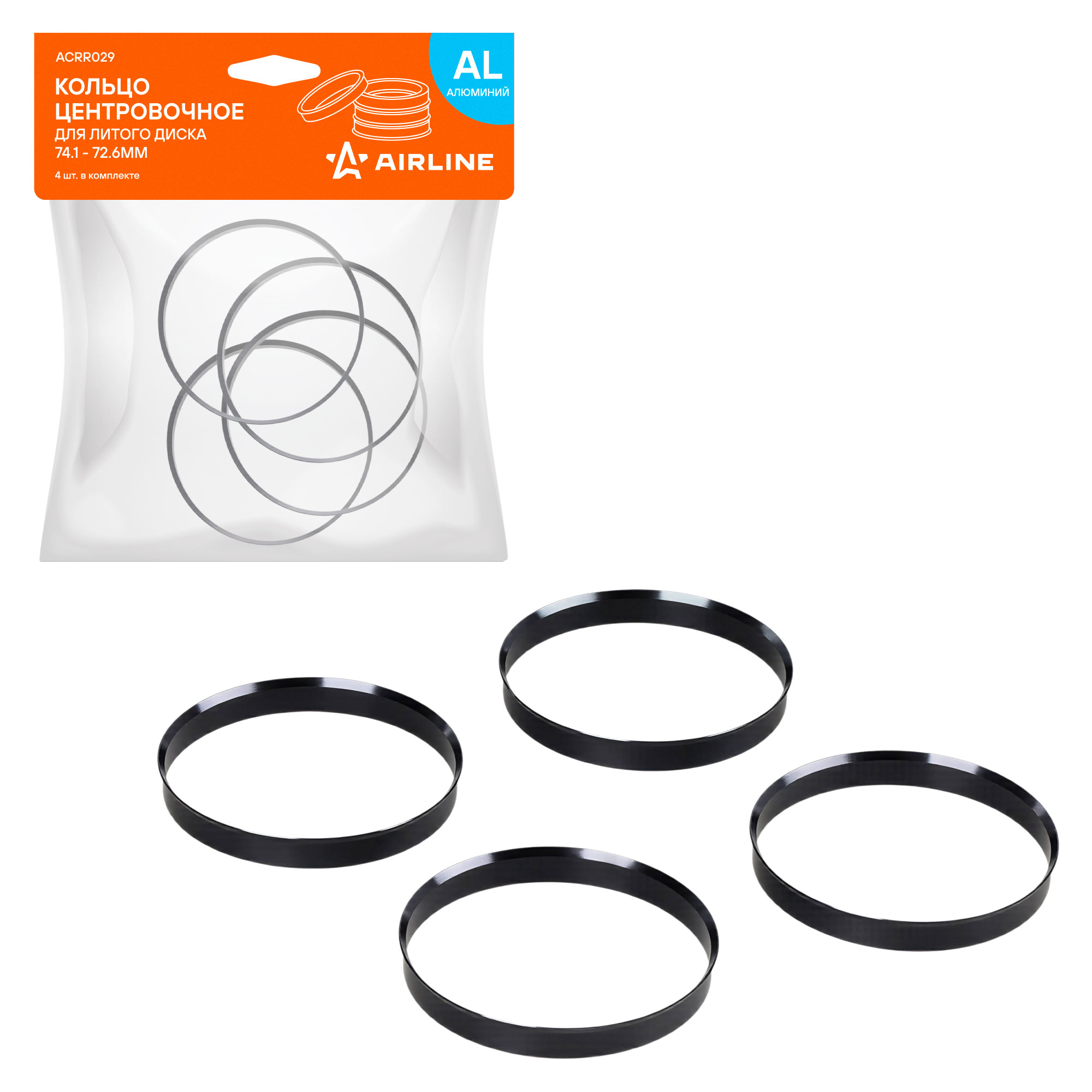 Центровочные кольца AIRLINE ACRR029 для литых дисков 74.1–72.6 мм, комплект 4 шт. — это надежное решение для точной посадки литых колесных дисков на ступицу автомобиля. Они компенсируют разницу в диаметре между центральным отверстием диска (74.1 мм) и посадочным диаметром ступицы (72.6 мм), обеспечивая идеальную центровку колеса.