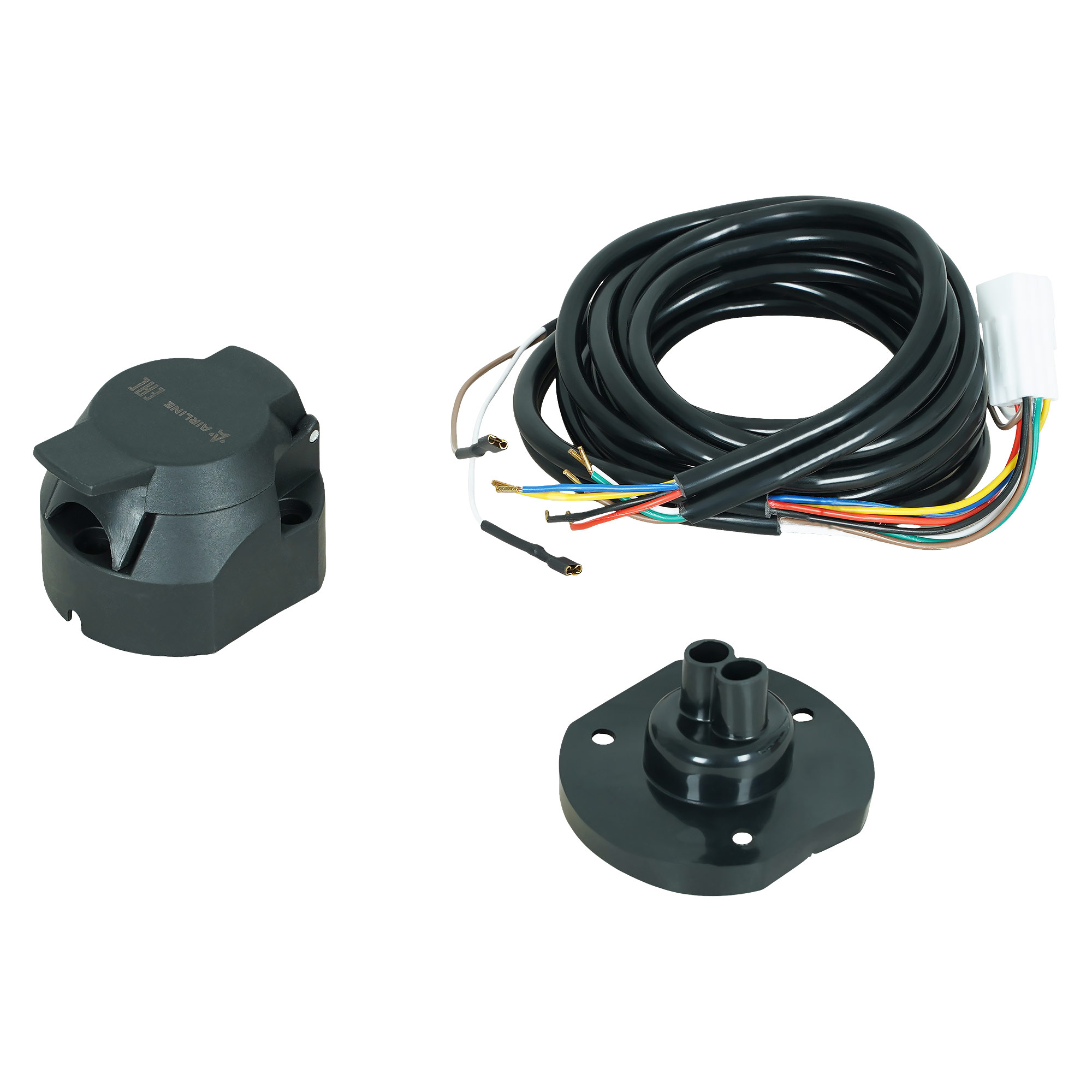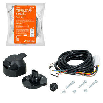 Корпус розетки выполнен из прочного пластика. Электрические разъёмы из латуни обеспечивают надёжный контакт. Резиновые уплотнители защищают от грязи и влаги. Провода и клеммы, входящие в комплект, позволяют без порчи штатной проводки автомобиля подключиться к проводам левого и правого фонарей.