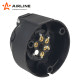 Корпус вилки выполнен из прочного пластика. Электрические разъёмы из латуни обеспечивают надёжный контакт.