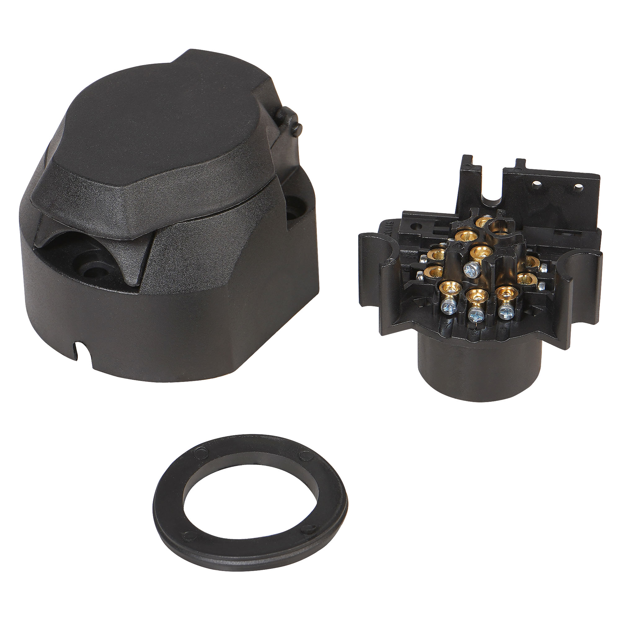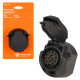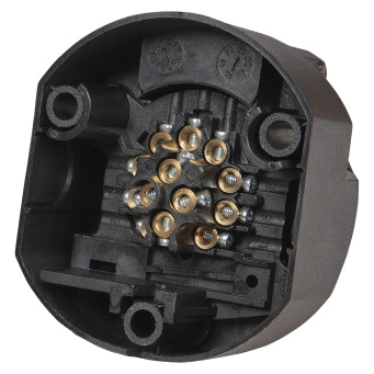 Корпус розетки выполнен из прочного пластика. Электрические разъёмы из латуни обеспечивают надёжный контакт. Резиновые уплотнители защищают от грязи и влаги.