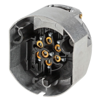 Корпус розетки выполнен из алюминия. Электрические разъёмы из латуни обеспечивают надёжный контакт. Резиновые уплотнители защищают от грязи и влаги.