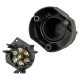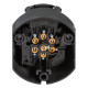Корпус розетки выполнен из прочного пластика. Электрические разъёмы из латуни обеспечивают надёжный контакт. Резиновые уплотнители защищают от грязи и влаги.