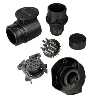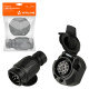 Корпус розетки и вилки выполнен из прочного пластика. Электрические разъёмы из латуни обеспечивают надёжный контакт. Резиновые уплотнители защищают от грязи и влаги.