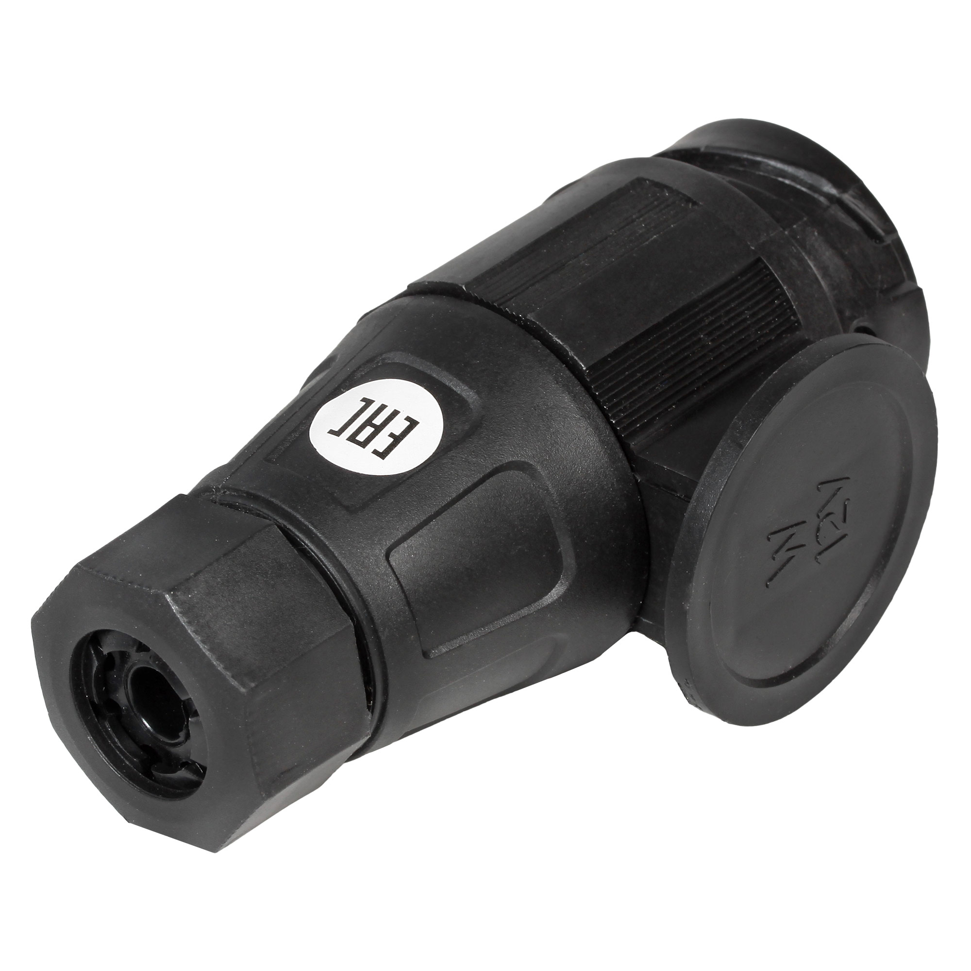 Корпус вилки выполнен из прочного пластика. Электрические разъёмы из латуни обеспечивают надёжный контакт. Резиновые уплотнители защищают от грязи и влаги.