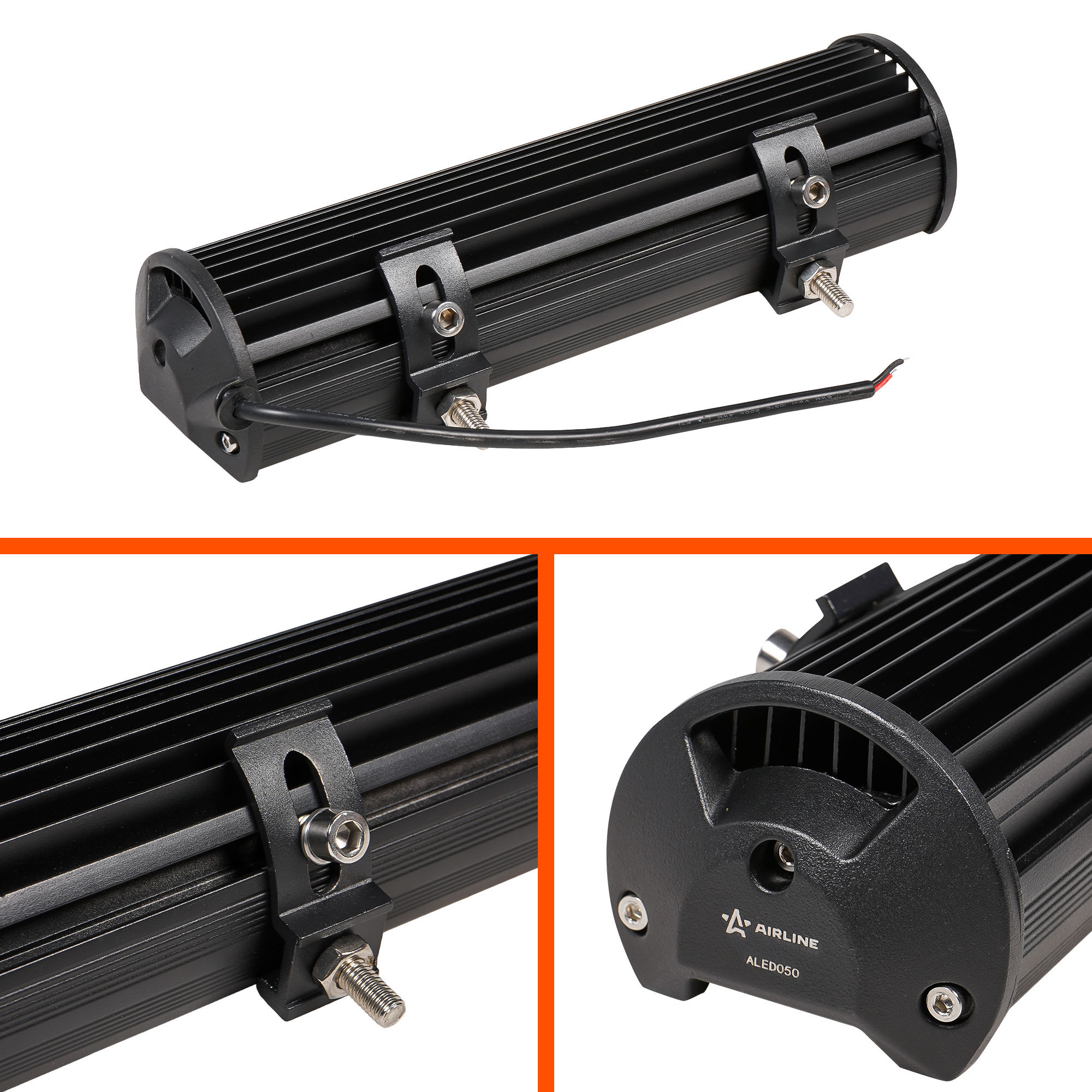 Светодиодная двухрядная фара (балка) AIRLINE ALED050 с прямоугольной формой корпуса и комбинированным световым лучом (направленный свет 30° + рассеянный свет 60°) обеспечивает универсальное освещение. Сочетание узконаправленного и широкого светового потока позволяет эффективно освещать как дальние участки дороги, так и прилегающую зону, что делает устройство оптимальным для эксплуатации в сложных погодных условиях, на строительных площадках и при движении по бездорожью.