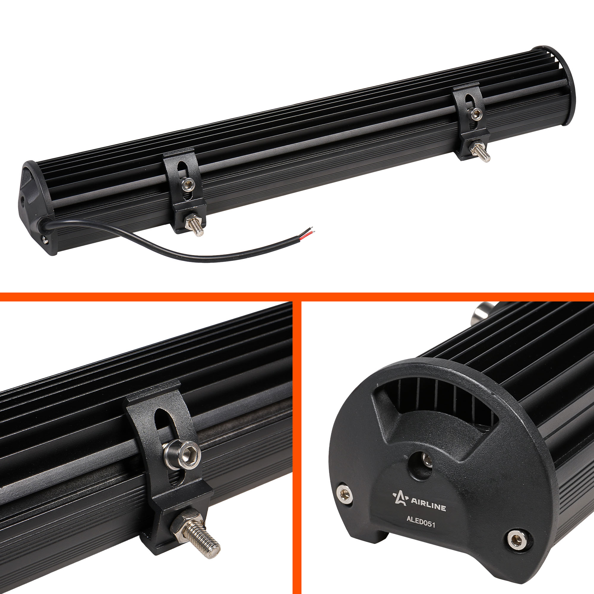 Светодиодная двухрядная фара (балка) AIRLINE ALED051 с прямоугольной формой корпуса и комбинированным световым лучом (направленный свет 30° + рассеянный свет 60°) обеспечивает универсальное освещение. Сочетание узконаправленного и широкого светового потока позволяет эффективно освещать как дальние участки дороги, так и прилегающую зону, что делает устройство оптимальным для эксплуатации в сложных погодных условиях, на строительных площадках и при движении по бездорожью.
