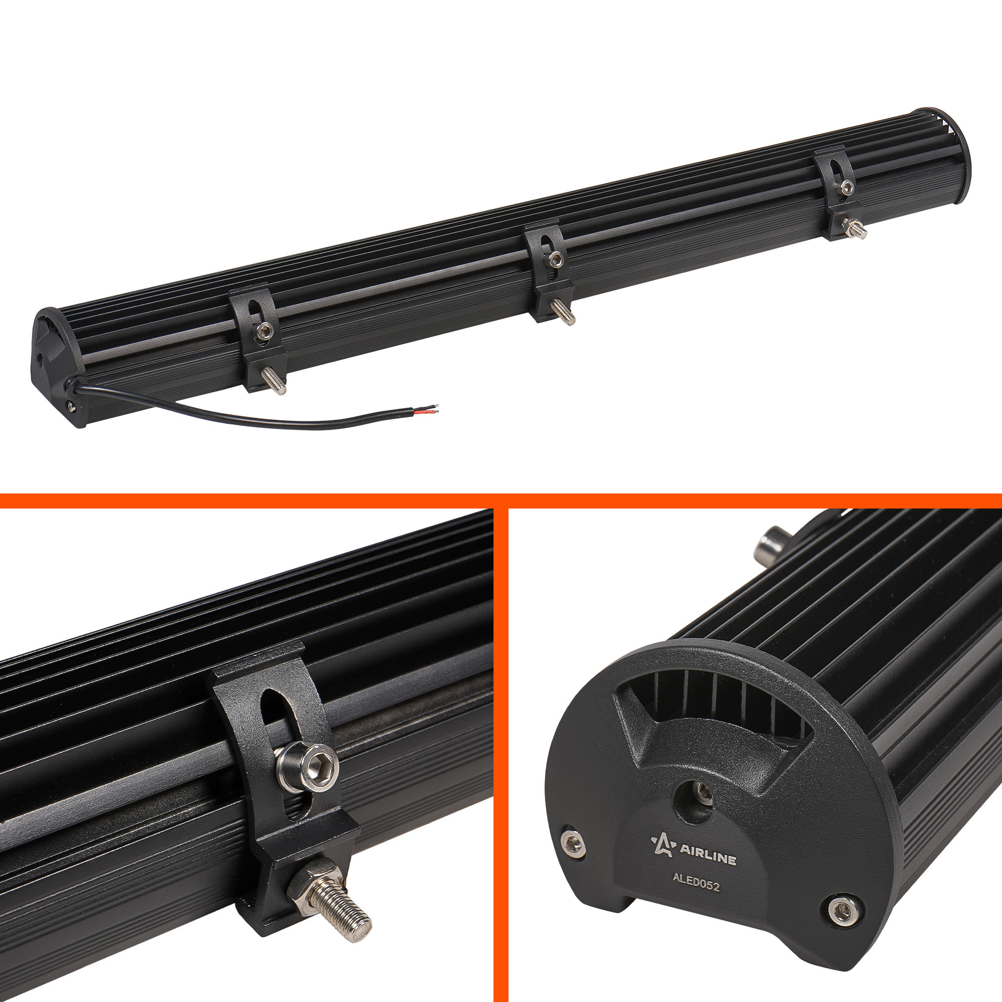 Светодиодная двухрядная фара (балка) AIRLINE ALED052 с прямоугольной формой корпуса и комбинированным световым лучом (направленный свет 30° + рассеянный свет 60°) обеспечивает универсальное освещение. Сочетание узконаправленного и широкого светового потока позволяет эффективно освещать как дальние участки дороги, так и прилегающую зону, что делает устройство оптимальным для эксплуатации в сложных погодных условиях, на строительных площадках и при движении по бездорожью.
