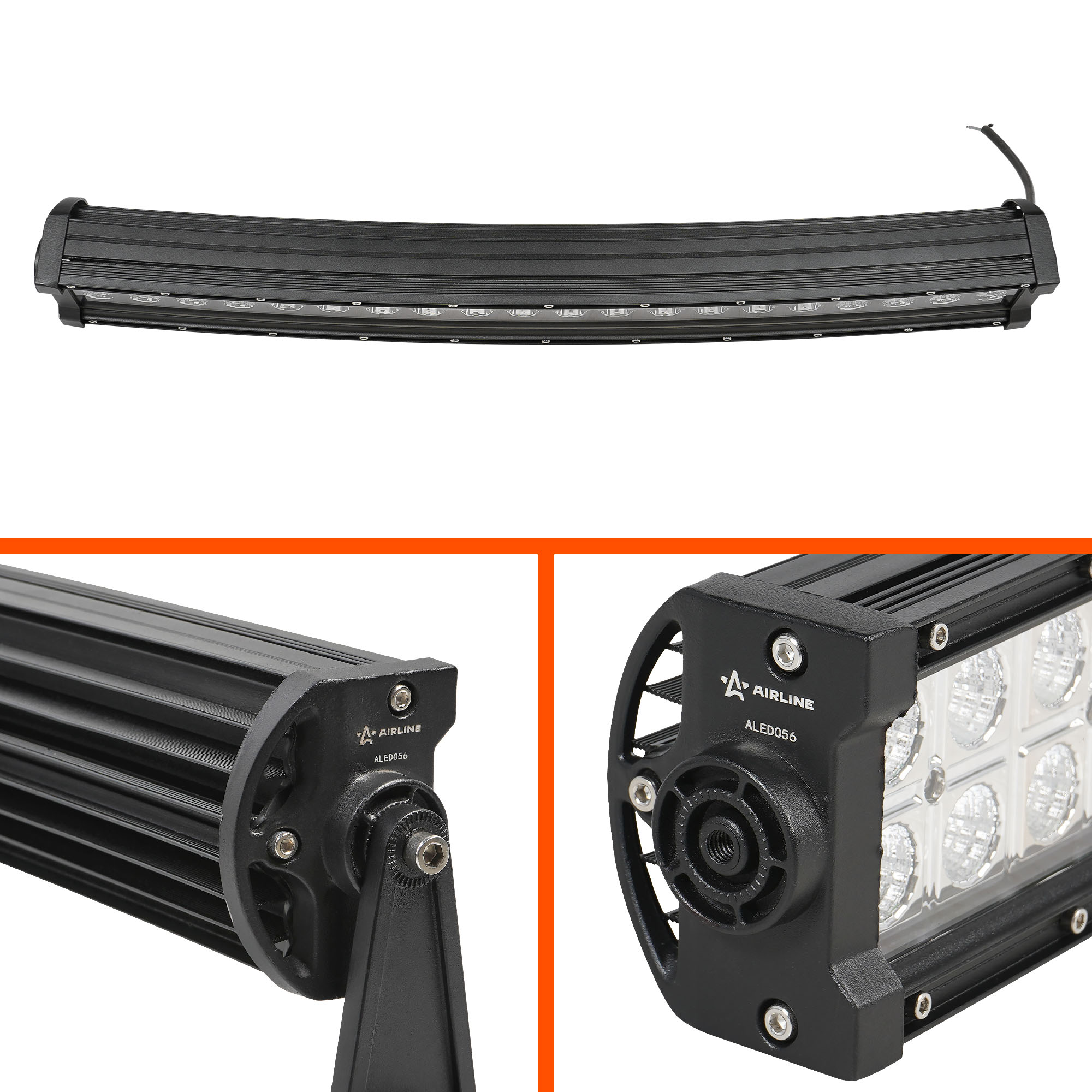 Светодиодная двухрядная фара (балка) AIRLINE ALED056 с прямоугольной формой корпуса, изогнутой конструкцией и комбинированным световым лучом (направленный свет 30° + рассеянный свет 60°) обеспечивает мощное и равномерное освещение.