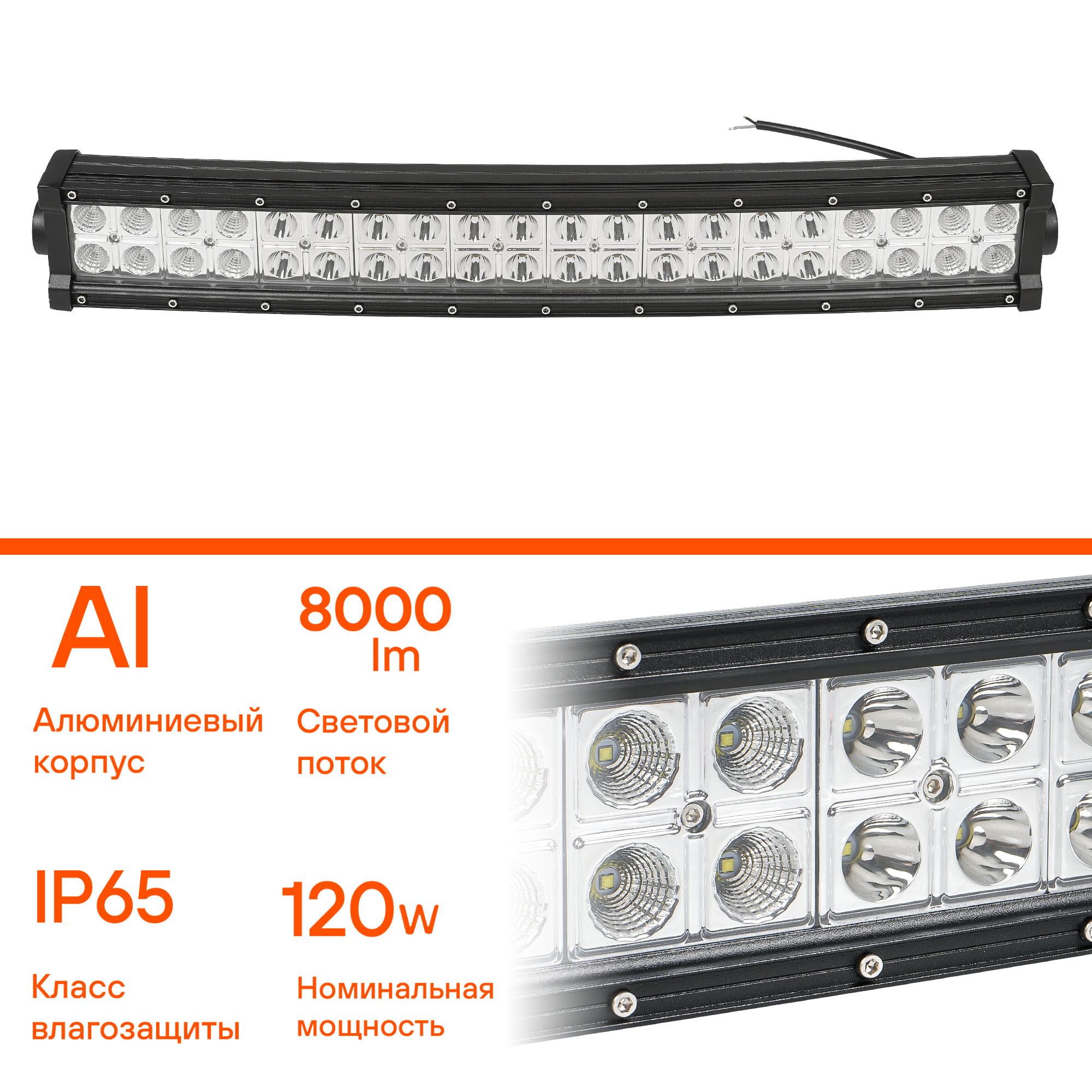 Изогнутая форма балки расширяет угол рассеивания света, увеличивая площадь освещения и улучшая обзор, что особенно важно при эксплуатации в условиях ограниченной видимости, в том числе ночью и в сложных погодных условиях.