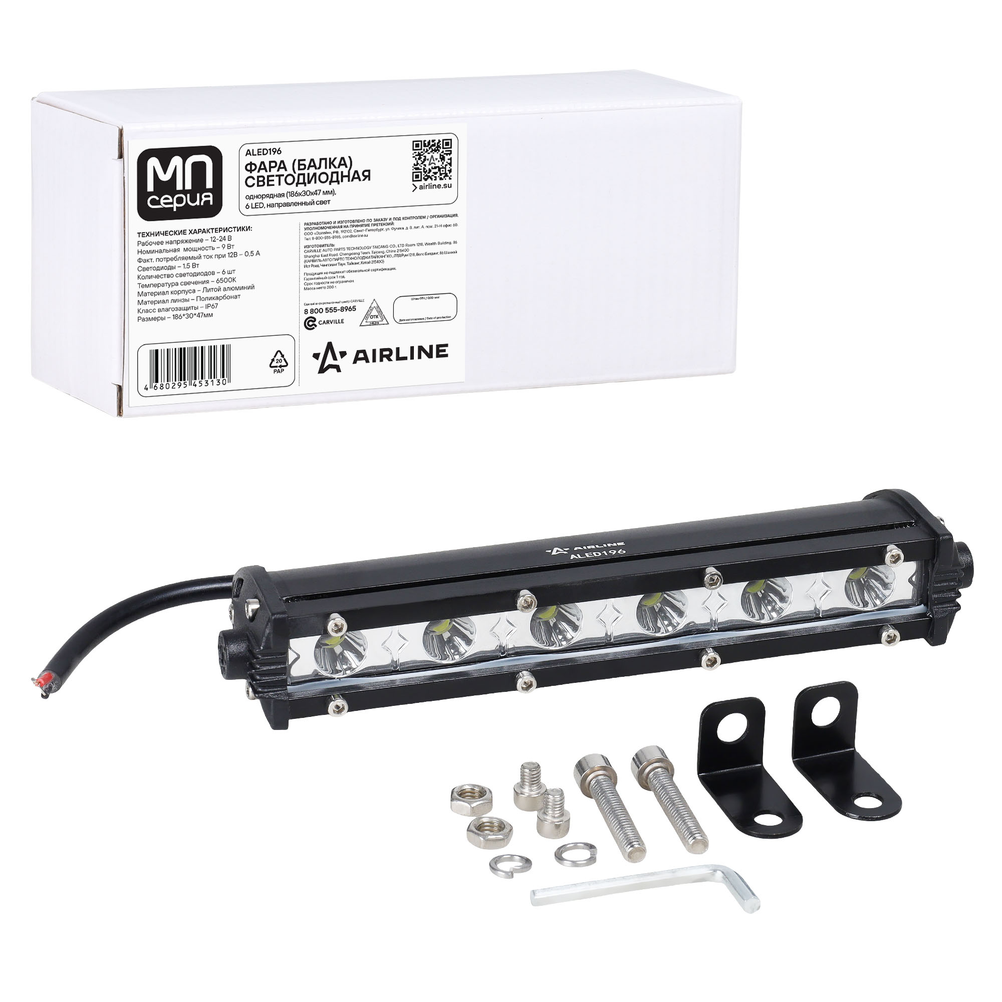 Светодиодная однорядная фара (балка) AIRLINE ALED196 с прямоугольной формой корпуса и направленным лучом света под углом 30° обеспечивает сфокусированное освещение на дальние дистанции, повышая видимость в условиях ограниченной освещённости. Оптимально подходит для эксплуатации в ночное время, сложных погодных условиях и на пересечённой местности.