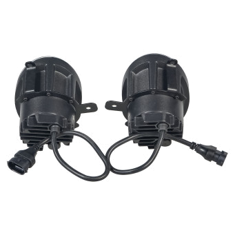 Величина светового потока комплекта составляет 3600 Лм, что достигается за счёт 4 светодиодов CSP 1860 мощностью по 9.45 Вт каждый. Цветовая температура 6500К создаёт яркий белый свет, приближенный к дневному освещению. Номинальная мощность комплекта составляет 38 Вт, рабочее напряжение – 12/24 В.