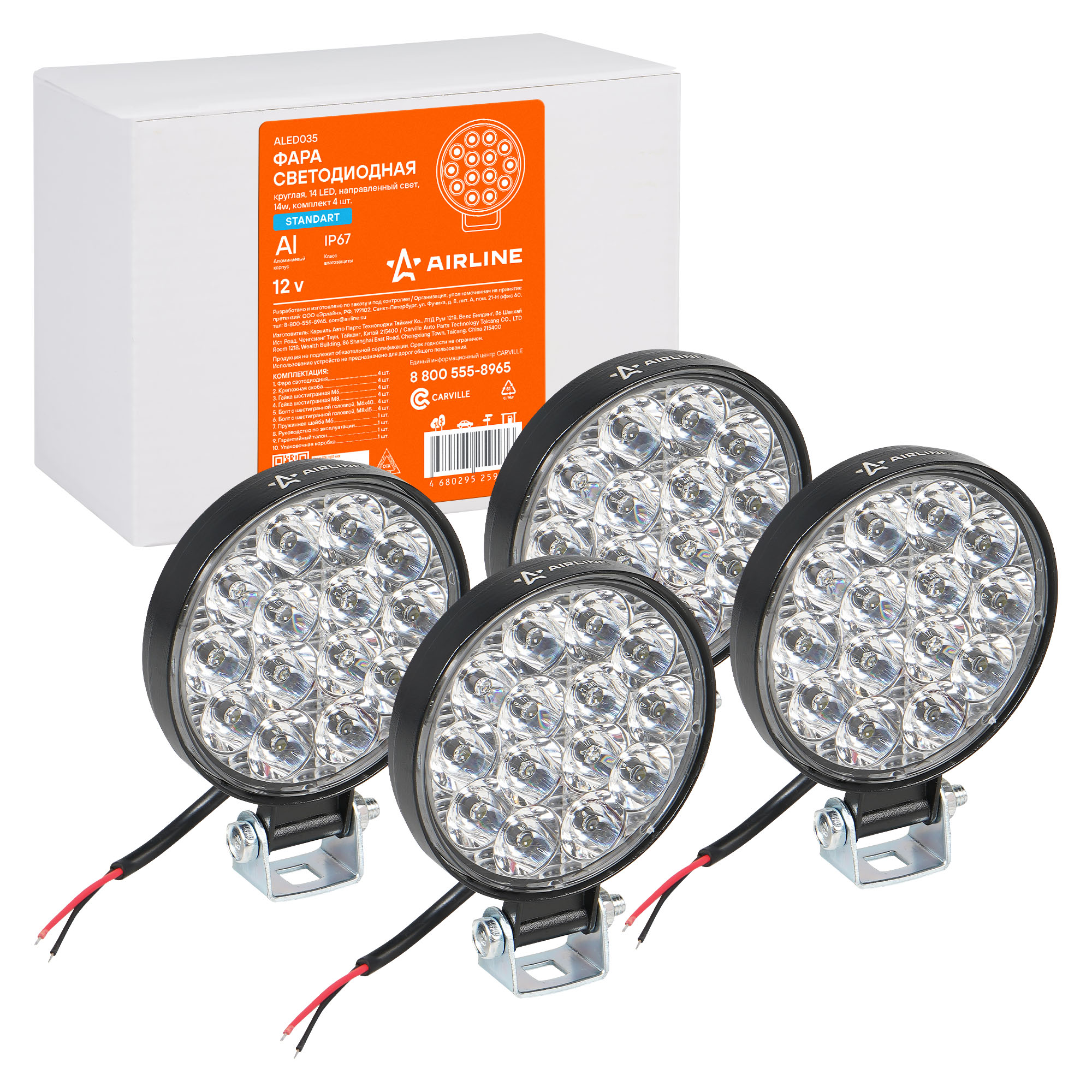 Фара направленного света AIRLINE ALED035 с круглой формой корпуса обеспечивает мощное и сфокусированное освещение на дальние дистанции, что делает её идеальным выбором для использования в условиях низкой видимости, включая ночное время и сложные погодные условия. Направленный луч света с углом 30° помогает водителю лучше ориентироваться в пространстве и своевременно замечать препятствия на пути.
