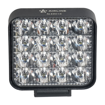 Фара AIRLINE ALED018 направленного света с квадратной формой корпуса обеспечивает мощное и сфокусированное освещение на дальние дистанции, что делает её идеальным выбором для использования в условиях низкой видимости, включая ночное время и сложные погодные условия. Направленный луч света с углом 30° помогает водителю лучше ориентироваться в пространстве и своевременно замечать препятствия на пути.