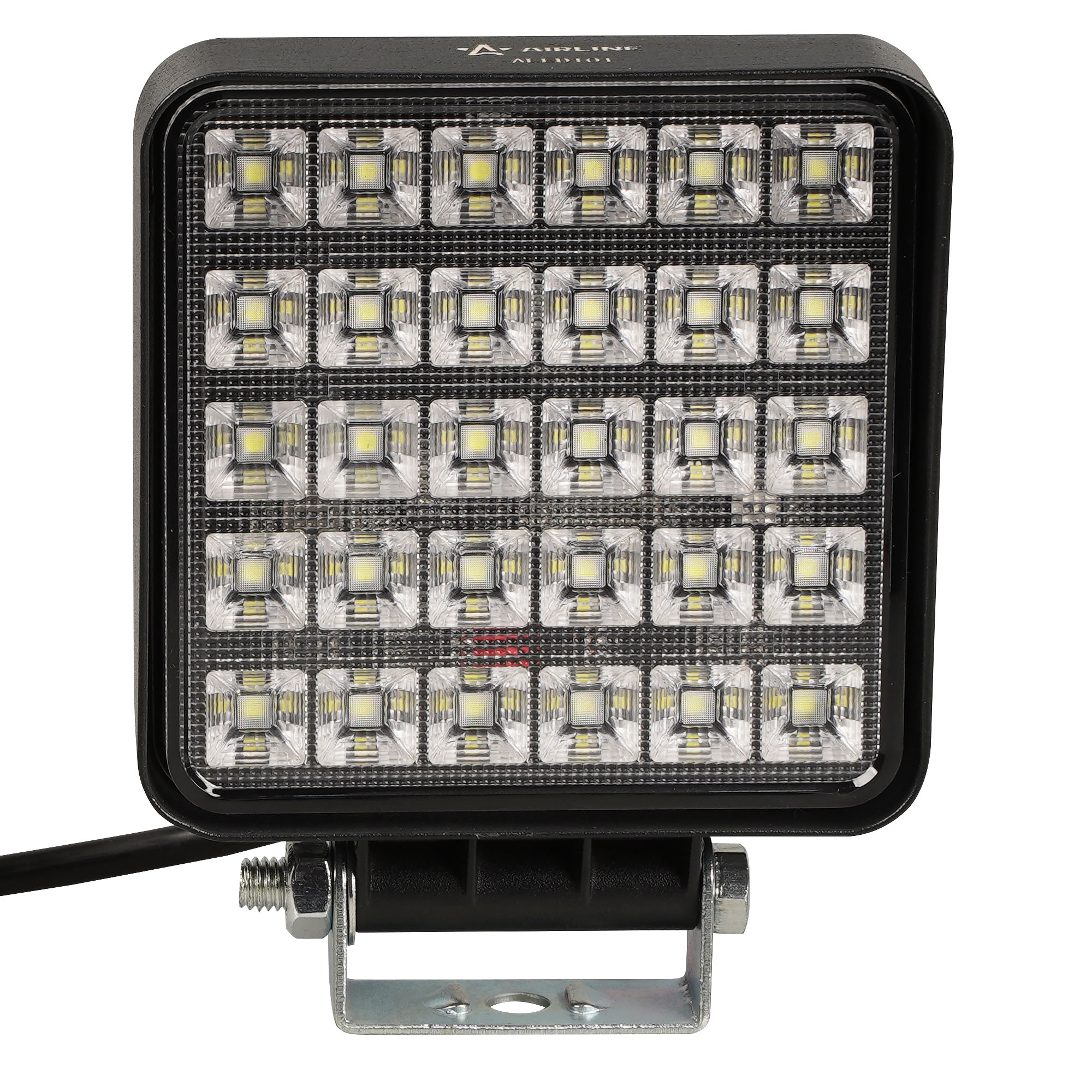 Фара AIRLINE ALED101 с квадратной формой корпуса и рассеянным лучом света с углом 60° обеспечивает равномерное и широкое освещение, идеально подходящее для работы в условиях ограниченной видимости, включая ночное время и сложные погодные условия. Рассеянный свет эффективно освещает большие площади, что особенно важно при работе на строительных площадках, в сельском хозяйстве или при движении по бездорожью.