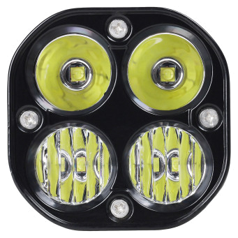 Величина светового потока LED фары составляет 4000 люмен, что достигается благодаря использованию 4 светодиодов 5050 мощностью по 10 Вт каждый. Температура свечения 6500К создаёт яркий белый свет, максимально приближенный к дневному.