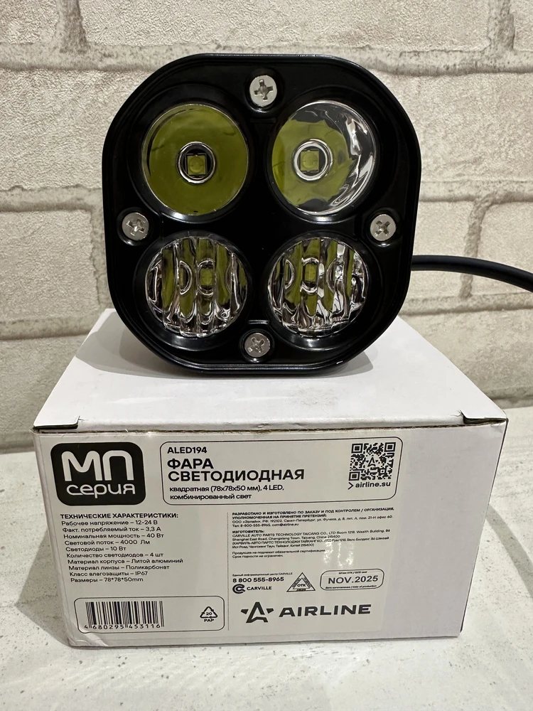 Фара AIRLINE ALED194 с квадратной формой корпуса и комбинированным световым лучом (направленный луч с углом 30° + рассеянный луч с углом 120°, формируемый гладким рефлектором и 5D линзой) обеспечивает универсальное освещение, идеально подходящее для работы в условиях ограниченной видимости, включая ночное время и сложные погодные условия. Сочетание направленного и рассеянного светового потока позволяет эффективно освещать как дальние участки дороги, так и широкие зоны рядом с транспортным средством. 5D линза увеличивает зону освещения и минимизирует тени, создавая комфортное и равномерное освещение на большой площади.