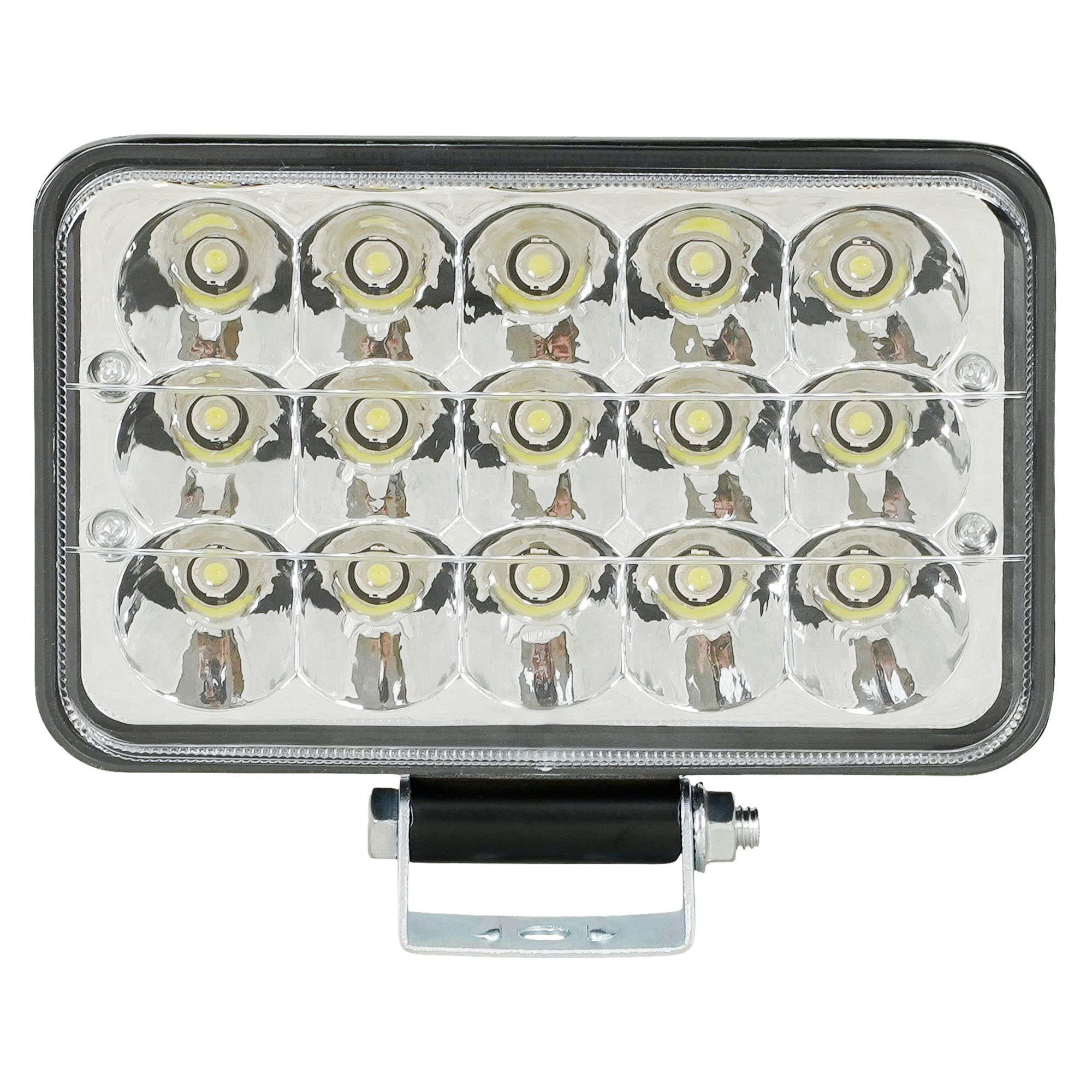 Величина светового потока LED фары составляет 2200 люмен, что достигается благодаря использованию 15 светодиодов EPISTAR мощностью по 3 Вт каждый. Температура свечения 6500К создаёт яркий белый свет, максимально приближенный к дневному освещению.