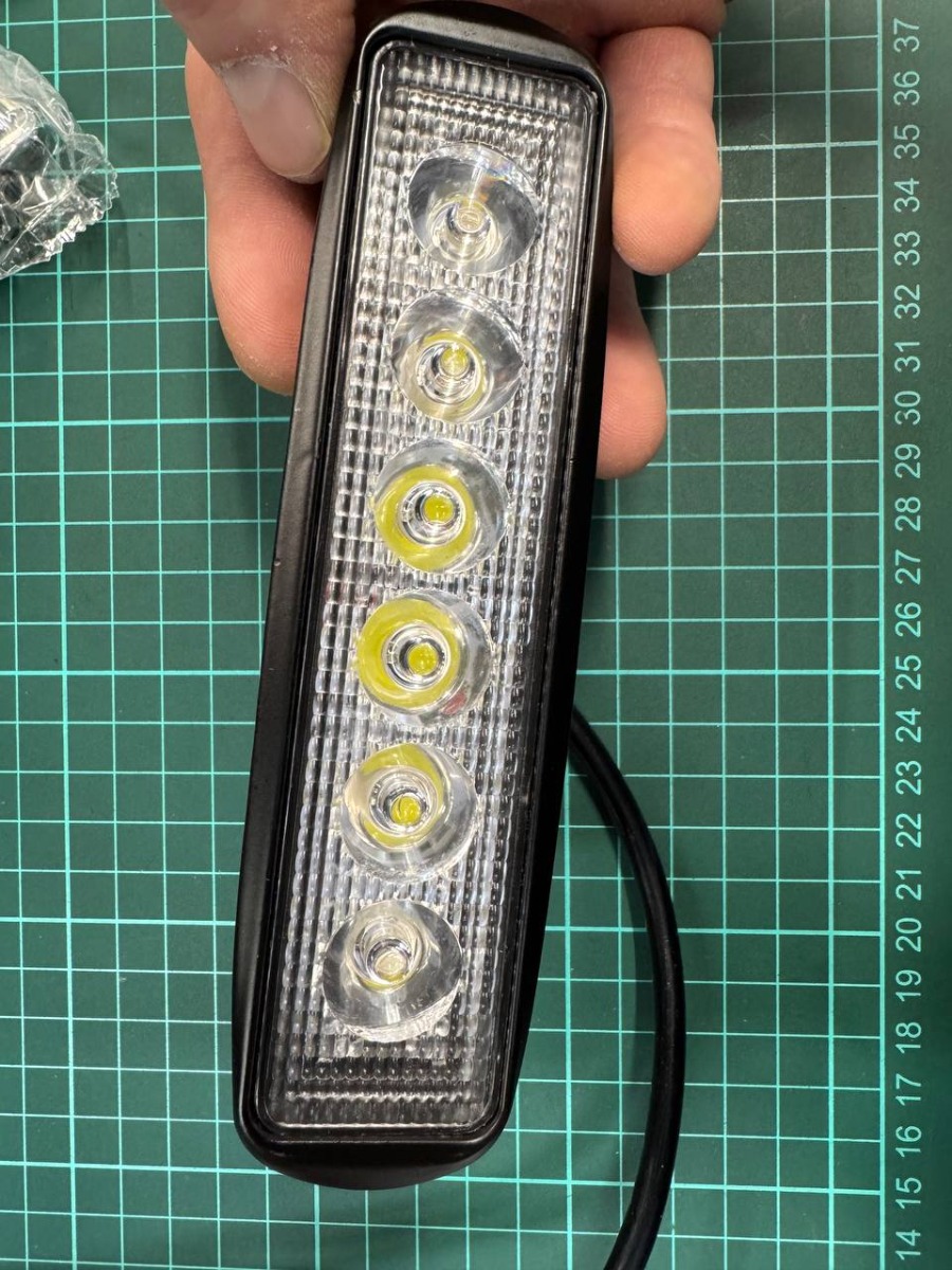 Величина светового потока LED фары составляет 1260 люмен, что достигается благодаря использованию 6 светодиодов EPISTAR мощностью по 3 Вт каждый. Температура свечения 6500К создаёт яркий белый свет, максимально приближенный к дневному.