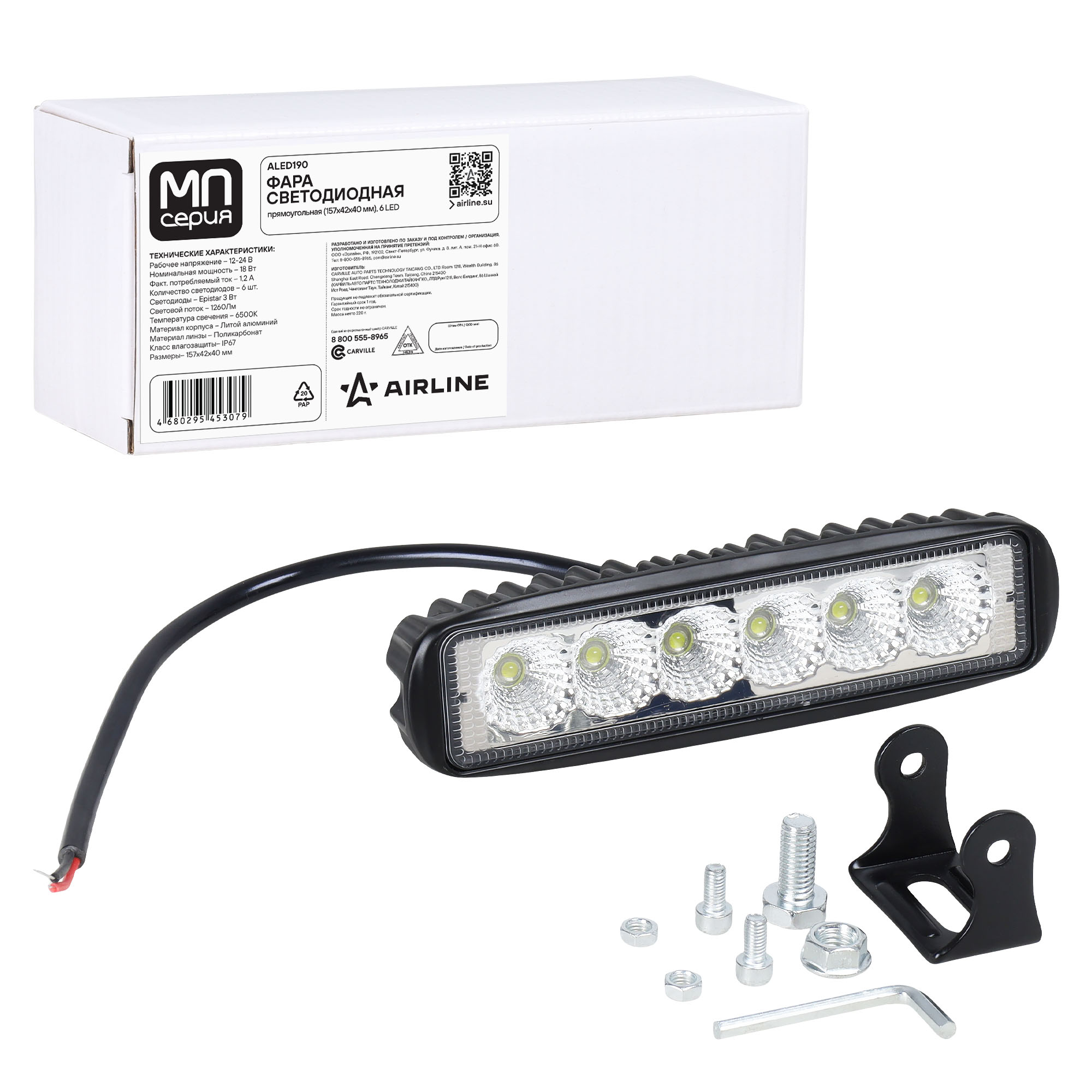 Фара AIRLINE ALED190 с прямоугольной формой корпуса и рассеянным лучом света с углом 60° обеспечивает равномерное и широкое освещение, идеально подходящее для работы в условиях ограниченной видимости, включая ночное время и сложные погодные условия. Рассеянный свет позволяет эффективно освещать большую площадь, что особенно важно при работе на строительных площадках, в сельском хозяйстве или при движении по бездорожью.