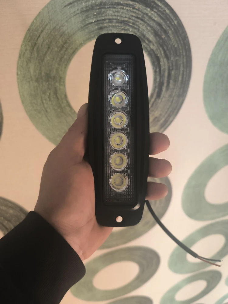 Величина светового потока LED фары составляет 1260 люмен, что достигается благодаря использованию 6 светодиодов EPISTAR мощностью по 3 Вт каждый. Температура свечения 6500К создаёт яркий белый свет, максимально приближенный к естественному дневному освещению.