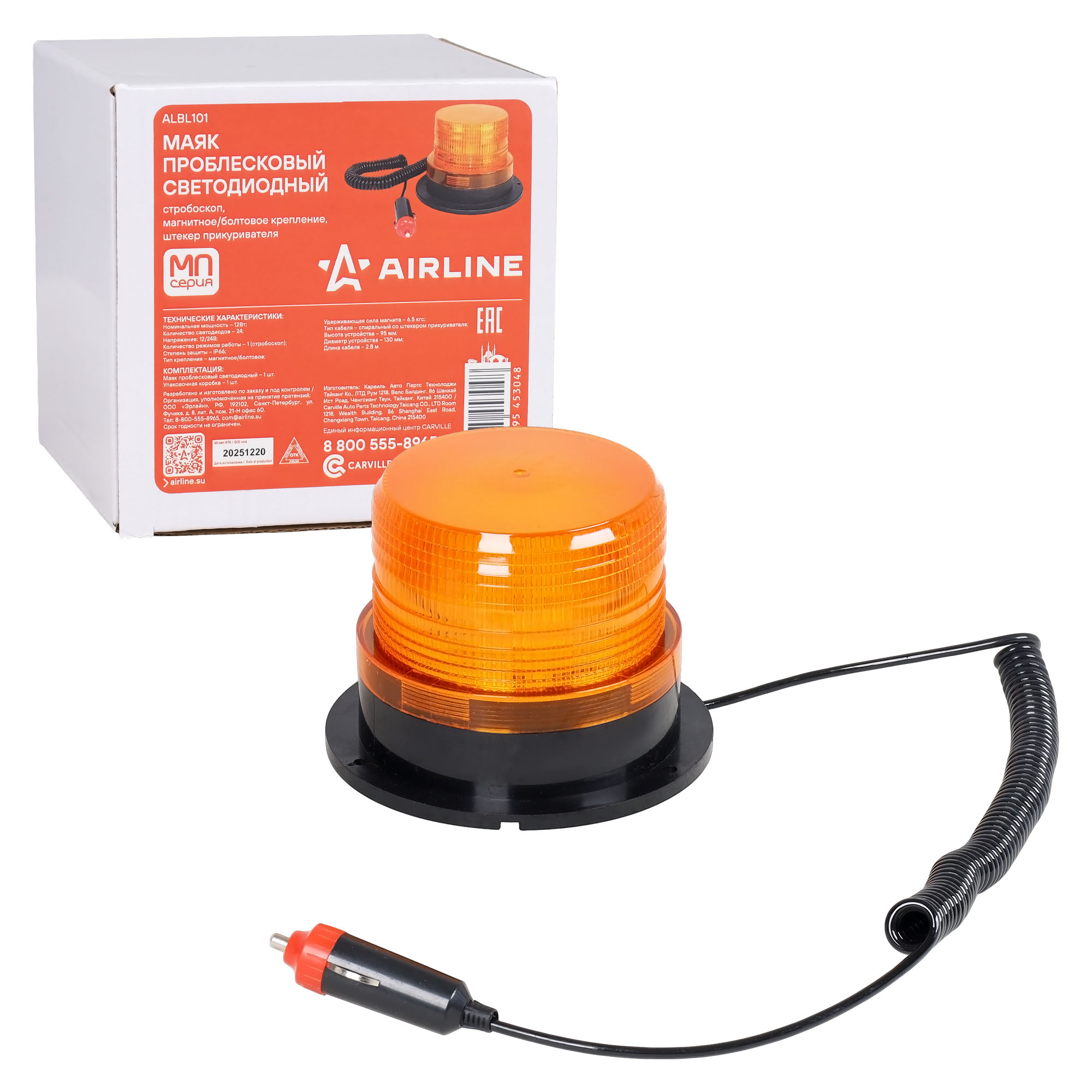 Светодиодный проблесковый маяк AIRLINE ALBL101 предназначен для световой сигнализации на транспортных средствах коммерческого, строительного, сельскохозяйственного и специального назначения.