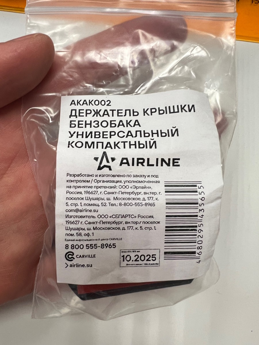Держатель крышки бензобака универсальный AIRLINE (AKAK002) предназначен для удобного и гигиеничного размещения крышки во время заправки автомобиля. Изделие устанавливается на внутреннюю поверхность лючка бензобака с помощью двустороннего скотча и позволяет избежать необходимости класть крышку на кузов или держать её в руках. Держатель изготовлен из прочного материала PET-G, устойчивого к влаге, топливу и перепадам температур, методом 3D-печати по технологии FFF/FDM, что обеспечивает точность исполнения и долговечность. Компактная конструкция не занимает лишнего места и не мешает закрытию лючка, а установка занимает всего несколько минут: достаточно очистить поверхность, снять защитную плёнку и плотно прижать изделие. Такой аксессуар повышает комфорт эксплуатации автомобиля и защищает кузов от загрязнений.