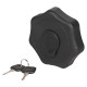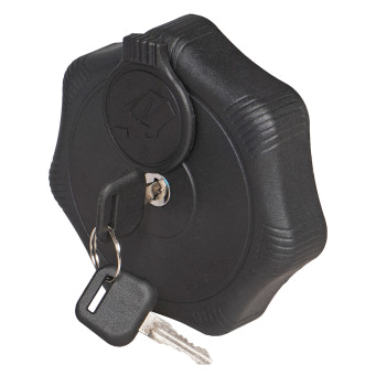 Корпус крышки изготовлен из прочного металла и пластика, устойчивого к агрессивным топливным испарениям, перепадам температур и механическим повреждениям. Байонетные зацепы в нижней части обеспечивают надёжную фиксацию, а по периметру установлена маслобензостойкая резиновая прокладка. В конструкции предусмотрен встроенный цилиндровый замок с комплектом ключей для защиты от кражи топлива.