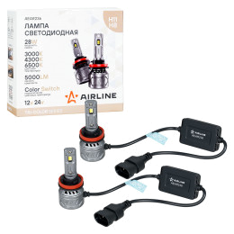 Лампа светодиодная H11/H8 TRI-COLOR, 28Вт, 5000Лм (2500Лм x 2), 3000/4300/6500K (Белый/Желтый), 12/24В, комплект 2 шт.