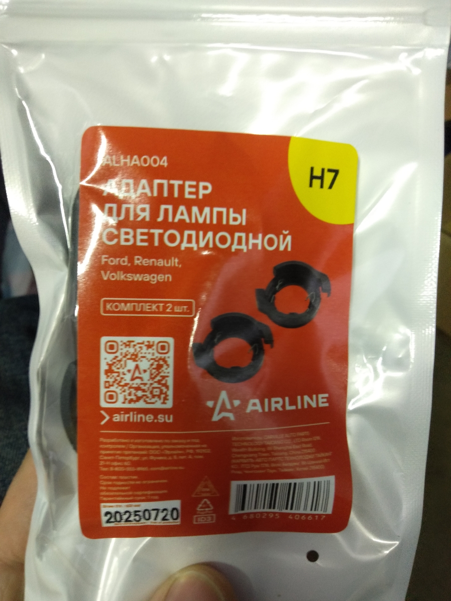 Переходник-адаптер AIRLINE ALHA004 предназначен для установки светодиодной лампы с цоколем H7 в штатное посадочное место автомобильной фары, изначально рассчитанное на использование галогенной лампы.