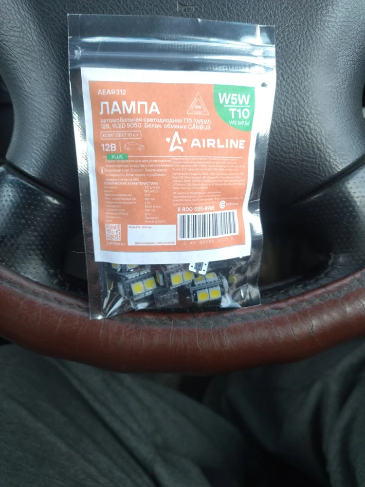 Светодиодная лампа W5W (T10) AIRLINE AEAR312 обеспечивает стабильное и эффективное освещение, формируя световой поток 101 лм при цветовой температуре 6000K. Использование 5 светодиодов 5050 гарантирует равномерное свечение без мерцания и задержек при включении.