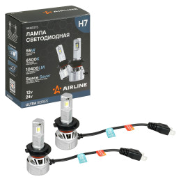 Лампа светодиодная H7 ULTRA, 55Вт, 10400Лм (5200Лм x 2), 6500К (Белый), 12/24В, комплект 2 шт.