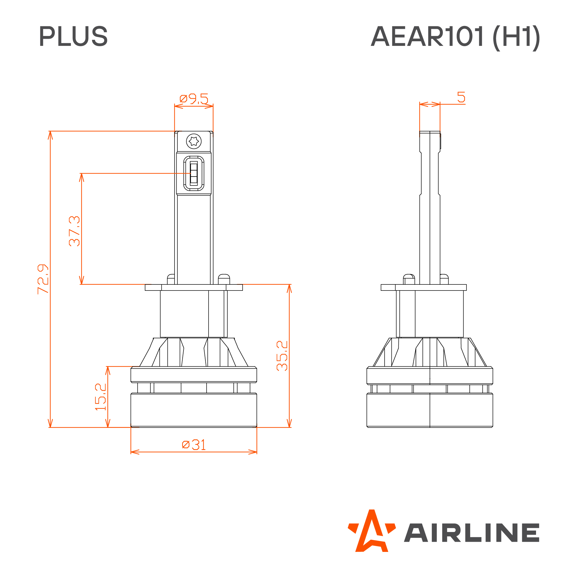 LED лампы AIRLINE AEAR101 с цоколем H1 предназначены для рефлекторной и линзованной оптики, формируют четкую светотеневую границу, направляя световой поток на дорожное полотно и исключая ослепление встречных водителей, что повышает безопасность эксплуатации.