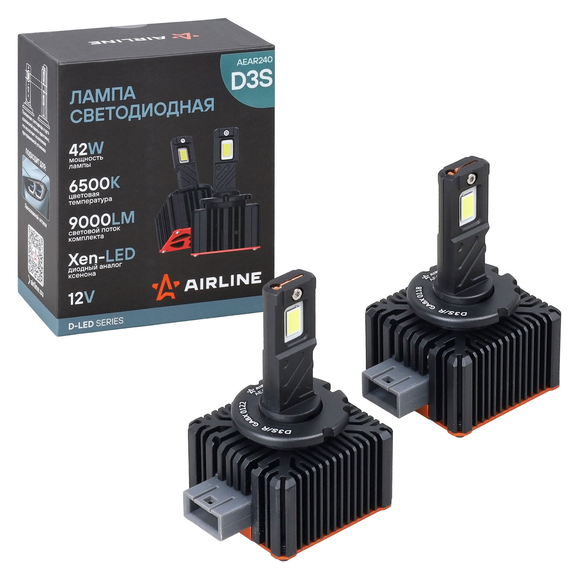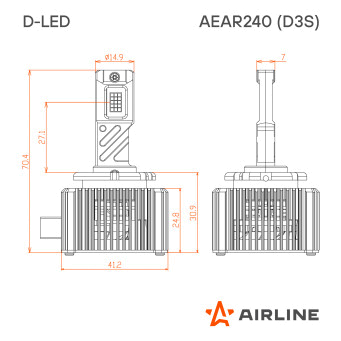 LED лампы AIRLINE AEAR240 с цоколем D3S предназначены для линзованной оптики, формируют четкую светотеневую границу, направляя световой поток на дорожное полотно и исключая ослепление встречных водителей, что повышает безопасность эксплуатации.