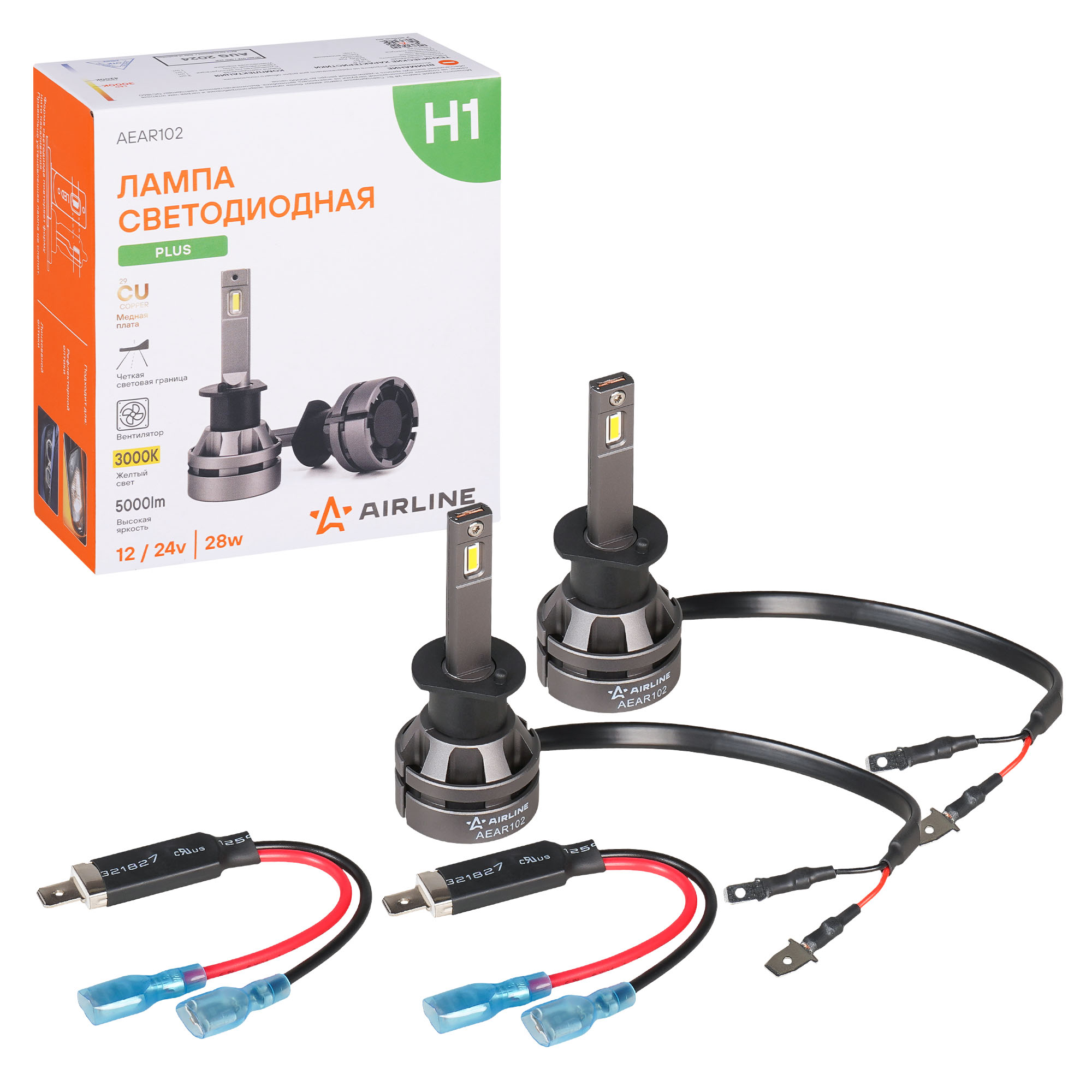 LED лампы AIRLINE AEAR102 с цоколем H1 предназначены для рефлекторной и линзованной оптики, формируют четкую светотеневую границу, направляя световой поток на дорожное полотно и исключая ослепление встречных водителей, что повышает безопасность эксплуатации.