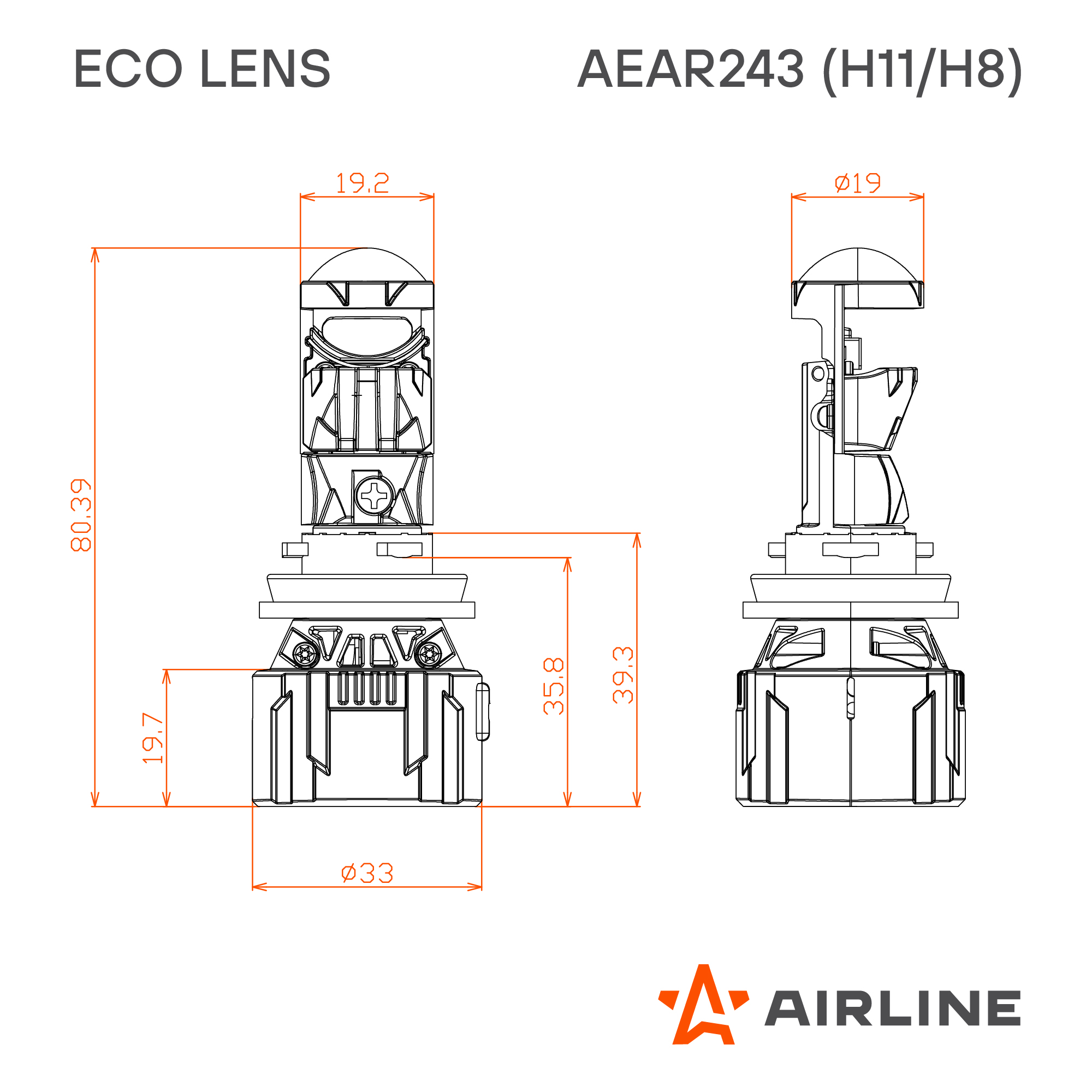 LED лампы AIRLINE AEAR243 с цоколем H11/H8 предназначены для рефлекторной оптики, формируют четкую светотеневую границу, направляя световой поток на дорожное полотно и исключая ослепление встречных водителей, что повышает безопасность эксплуатации.
