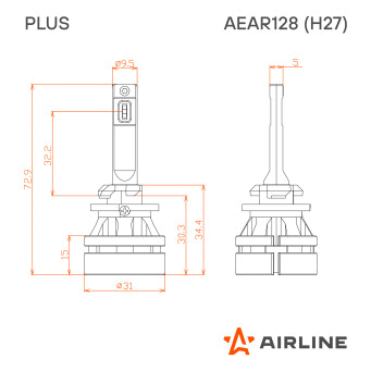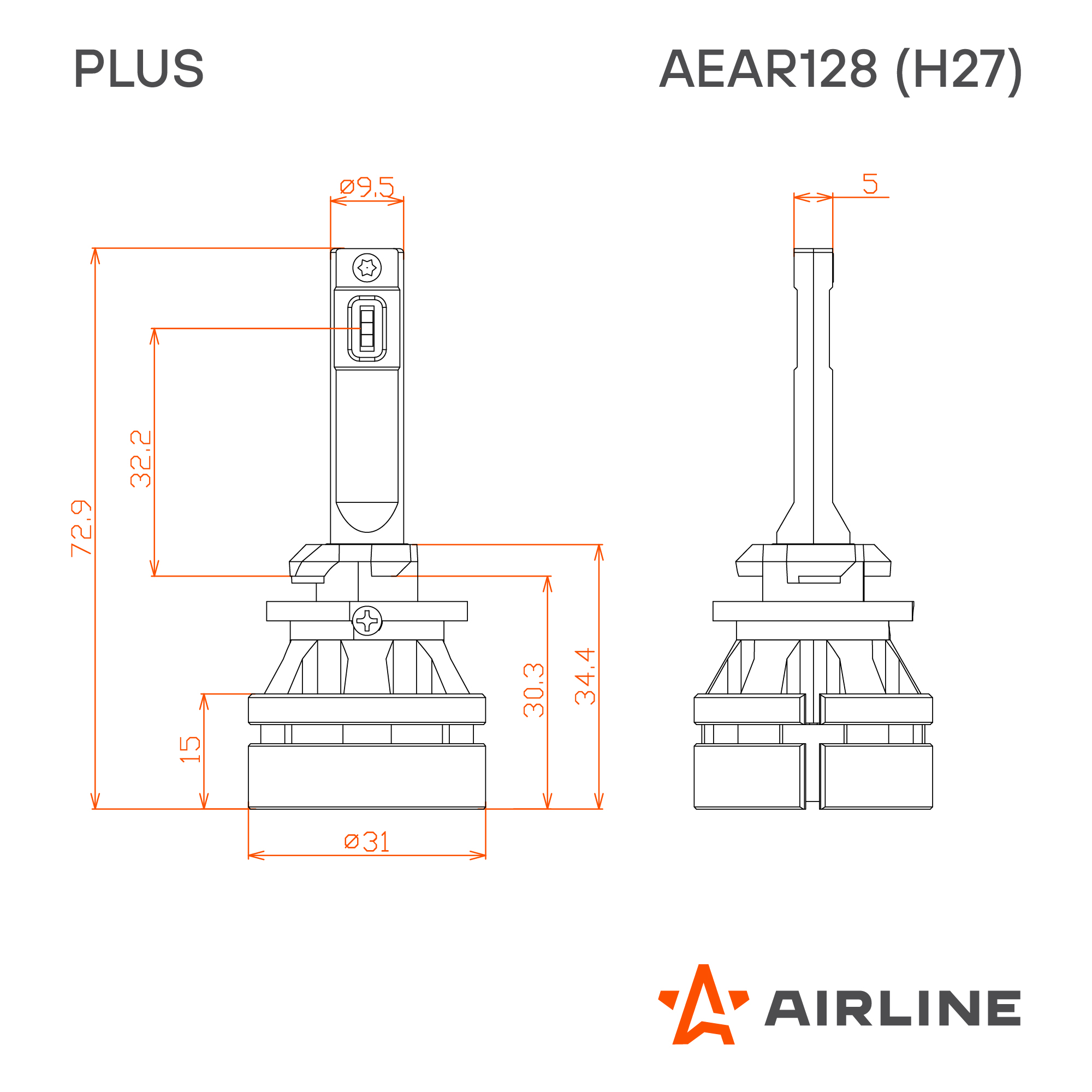 LED лампы AIRLINE AEAR128 с цоколем H27 предназначены для рефлекторной и линзованной оптики, формируют четкую светотеневую границу, направляя световой поток на дорожное полотно и исключая ослепление встречных водителей, что повышает безопасность эксплуатации.