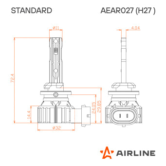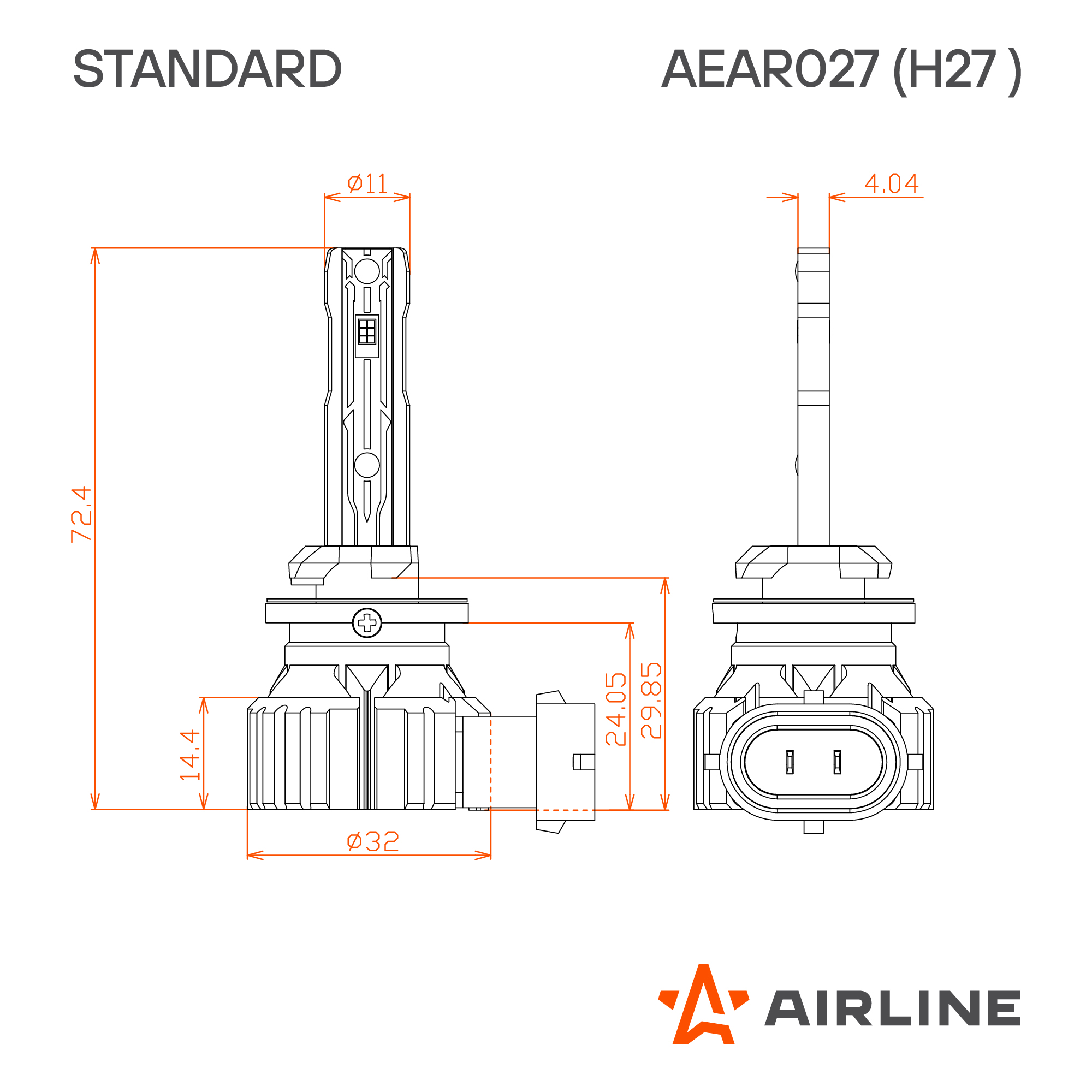 LED лампы AIRLINE AEAR027 с цоколем H27 предназначены для рефлекторной и линзованной оптики, формируют четкую светотеневую границу, направляя световой поток на дорожное полотно и исключая ослепление встречных водителей, что повышает безопасность эксплуатации.