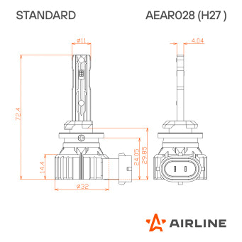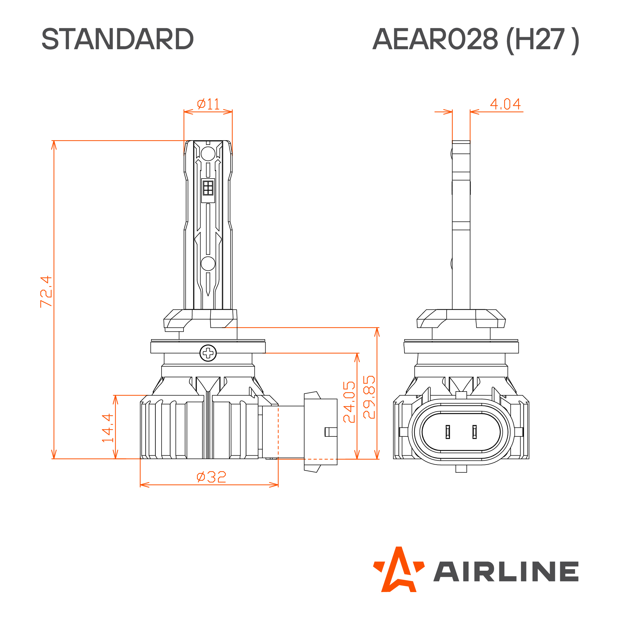 LED лампы AIRLINE AEAR262 с цоколем H27 предназначены для рефлекторной и линзованной оптики, формируют четкую светотеневую границу, направляя световой поток на дорожное полотно и исключая ослепление встречных водителей, что повышает безопасность эксплуатации.