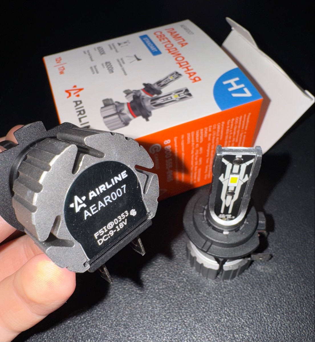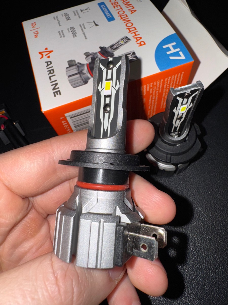 LED лампы AIRLINE AEAR007 с цоколем H7 предназначены для рефлекторной и линзованной оптики, формируют четкую светотеневую границу, направляя световой поток на дорожное полотно и исключая ослепление встречных водителей, что повышает безопасность эксплуатации.