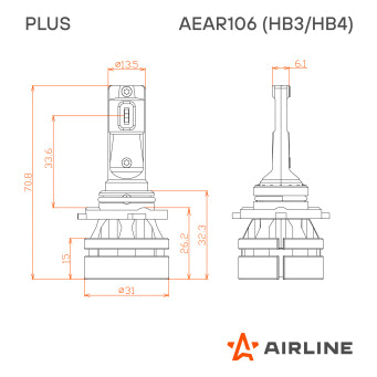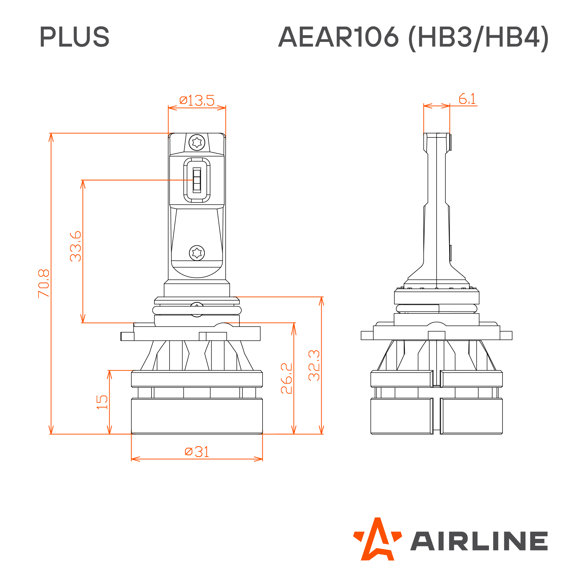 LED лампы AIRLINE AEAR106 с цоколем HB3/HB4 предназначены для рефлекторной и линзованной оптики, формируют четкую светотеневую границу, направляя световой поток на дорожное полотно и исключая ослепление встречных водителей, что повышает безопасность эксплуатации.