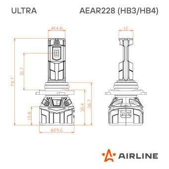 LED лампы AIRLINE AEAR228 с цоколем HB3/HB4 предназначены для рефлекторной и линзованной оптики, формируют четкую светотеневую границу, направляя световой поток на дорожное полотно и исключая ослепление встречных водителей, что повышает безопасность эксплуатации.