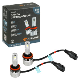 Лампа светодиодная H11/H8 ULTRA, 55Вт, 10400Лм (5200Лм x 2), 6500К (Белый), 12/24В, комплект 2 шт.