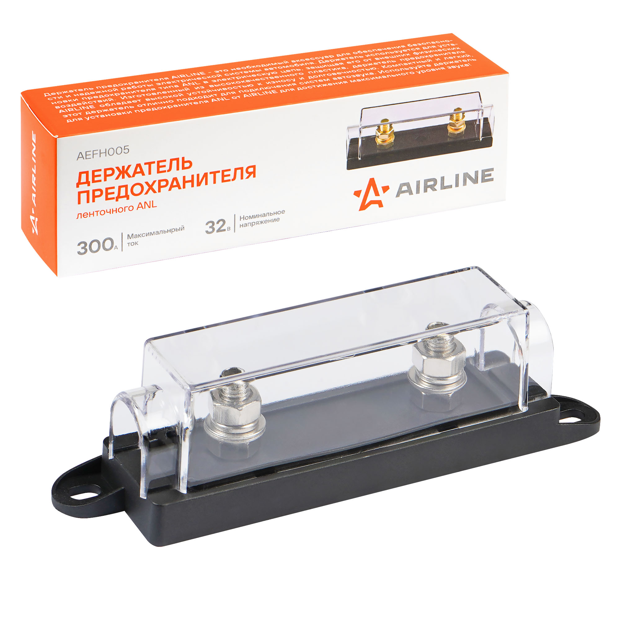 Держатель предохранителя AIRLINE - это необходимый аксессуар для обеспечения безопасности и надежной работы электрической системы автомобиля. Держатель используется для установки предохранителя типа ANL в электрическую цепь, защищая его от внешних физических воздействий. Изготовленный из высококачественного пластика, держатель предохранителя AIRLINE обладает высокой устойчивостью к износу и долговечностью. Компактный и легкий, этот держатель отлично подходит для подключения систем автозвука. Используйте держатель для установки предохранителя ANL от AIRLINE для достижения максимального уровня звука!