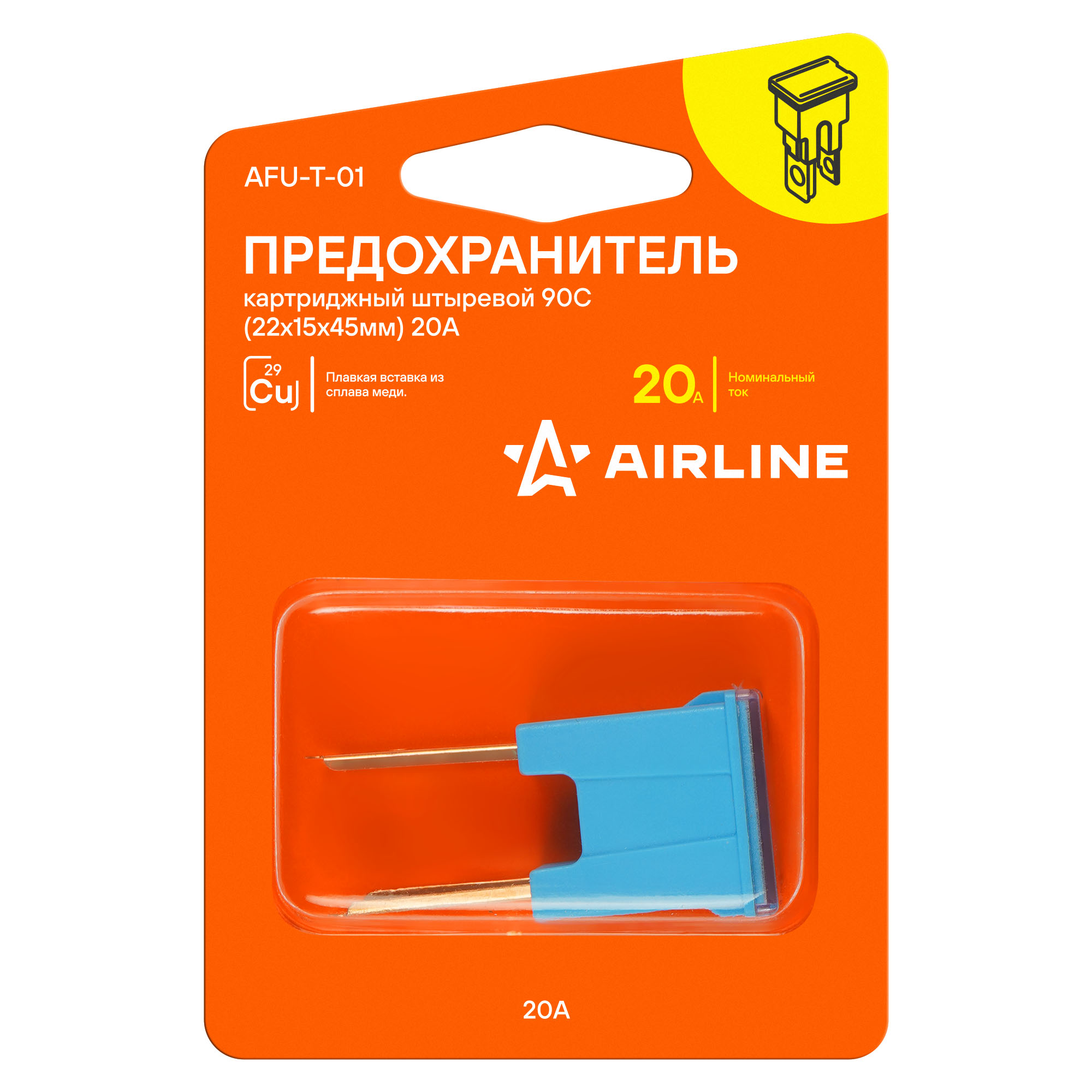 Прямой картриджный штыревой предохранитель 90C. Предназначен для защиты автомобильных электрических цепей и устройств в них от перегрузок и короткого замыкания. В предохранителях использована вставка из высококачественного сплава меди, которая в случае нештатной ситуации разомкнет неисправную электрическую цепь. Также внутри предохранителя для надежной фиксации его элементов используется керамический уплотнитель. Применяется преимущественно в иномарках. Благодаря своей надежности и долговечности предохранители AIRLINE обеспечивают безопасносную эксплуатацию автомобиля и позволяют избежать поломок, связанных с перегрузками или короткими замыканиями. Предохранитель для иномарок имеет стандартный типоразмер и легко устанавливается в штатное место в блоке предохранителей без необходимости специальных знаний и инструментов.