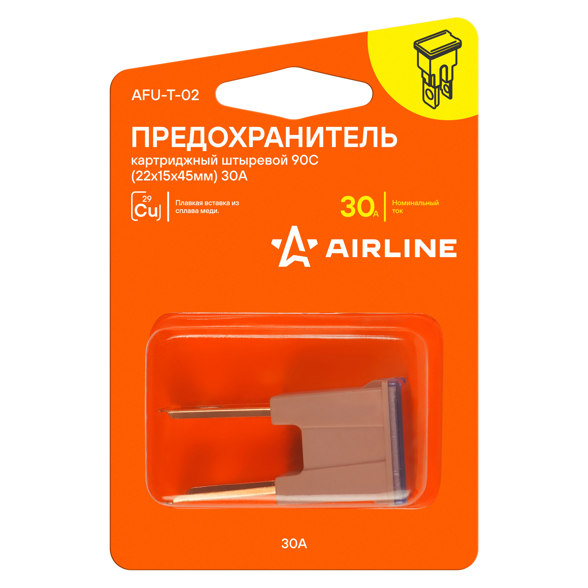 Прямой картриджный штыревой предохранитель 90C. Предназначен для защиты автомобильных электрических цепей и устройств в них от перегрузок и короткого замыкания. В предохранителях использована вставка из высококачественного сплава меди, которая в случае нештатной ситуации разомкнет неисправную электрическую цепь. Также внутри предохранителя для надежной фиксации его элементов используется керамический уплотнитель. Применяется преимущественно в иномарках. Благодаря своей надежности и долговечности предохранители AIRLINE обеспечивают безопасносную эксплуатацию автомобиля и позволяют избежать поломок, связанных с перегрузками или короткими замыканиями. Предохранитель для иномарок имеет стандартный типоразмер и легко устанавливается в штатное место в блоке предохранителей без необходимости специальных знаний и инструментов.