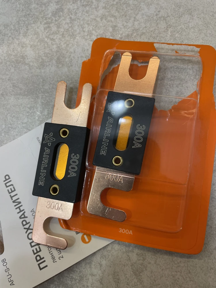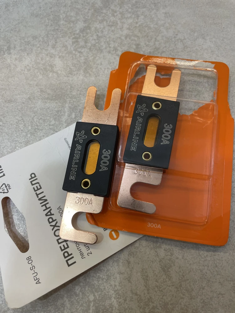 Комплект из двух ленточных предхранителей типа ANL. Предназначен для защиты автомобильных электрических цепей и устройств в них от перегрузок и короткого замыкания. В предохранителях использована вставка из высококачественного сплава меди, которая в случае нештатной ситуации разомкнет неисправную электрическую цепь. Предохранители такого типа преимущественно используются в системах автозвука. Благодаря своей надежности и долговечности предохранители AIRLINE обеспечивают безопасносную эксплуатацию автомобиля и позволяют избежать поломок, связанных с перегрузками или короткими замыканиями. Используйте предохранители AIRLINE для надежной защиты вашего автомобиля.